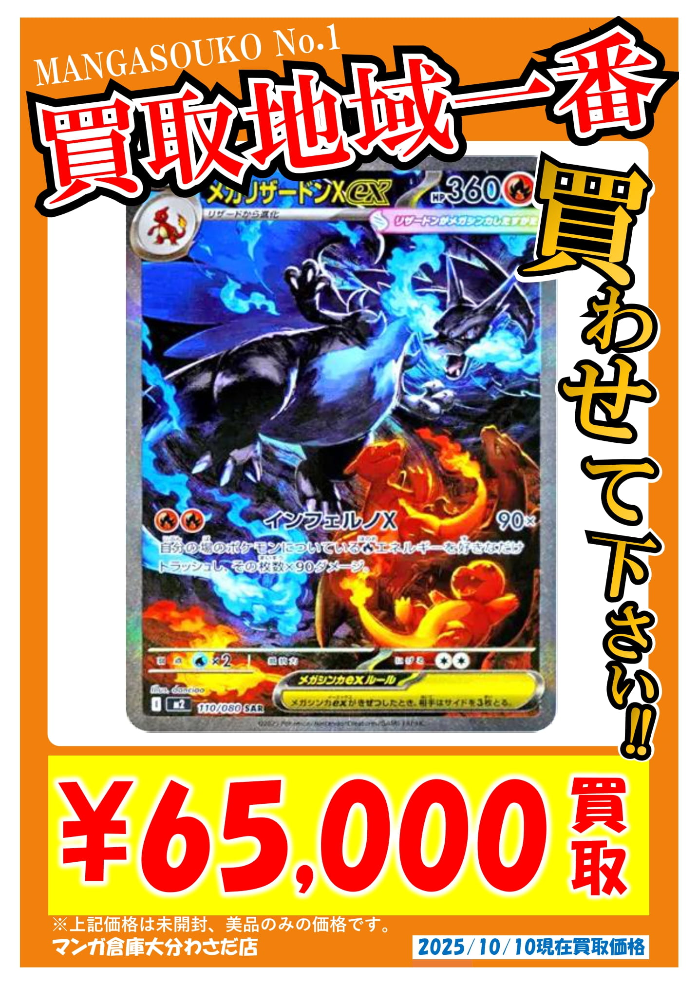 2025.10.10 買取情報 takalab_5 ⭐ポケモンカード 買取価格更新しました!⭐ ★買取情報★ ※2025/10/10現在の価格となります。 在庫状況・状態によってお値段が変動いたします。予めご了承ください。 **************** こちら↓もぜひチェックしてみてくださいね♪(*´▽`*) ・最新のイベント情報はこちら ・最新の買取情報はこちら 関連 コメントを残す コメントをキャンセルメールアドレスが公開されることはありません。 ※ が付いている欄は必須項目ですコメント ※ 名前 ※ メール ※ サイト 新しいコメントをメールで通知 新しい投稿をメールで受け取る Δ