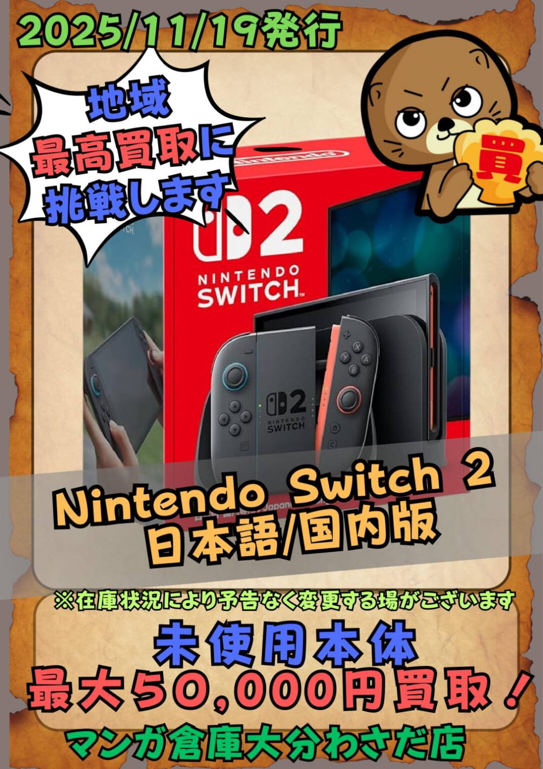2025.11.30 買取情報 takalab_2 ★Nintendo Switch2買取大募集!★ 本日も当店はNintendo Switch2本体の買い取りを大募集中です! Switch2をお売り頂く際はぜひわさだ店をご利用ください! みなさまのご来店をお待ちしております!! ※2025/11/30現在の価格となります。 在庫状況・状態によってお値段が変動いたします。予めご了承ください。 **************** こちら↓もぜひチェックしてみてくださいね♪(*´▽`*) ・最新のイベント情報はこちら ・最新の買取情報はこちら 関連 コメントを残す コメントをキャンセルメールアドレスが公開されることはありません。 ※ が付いている欄は必須項目ですコメント ※ 名前 ※ メール ※ サイト 新しいコメントをメールで通知 新しい投稿をメールで受け取る Δ