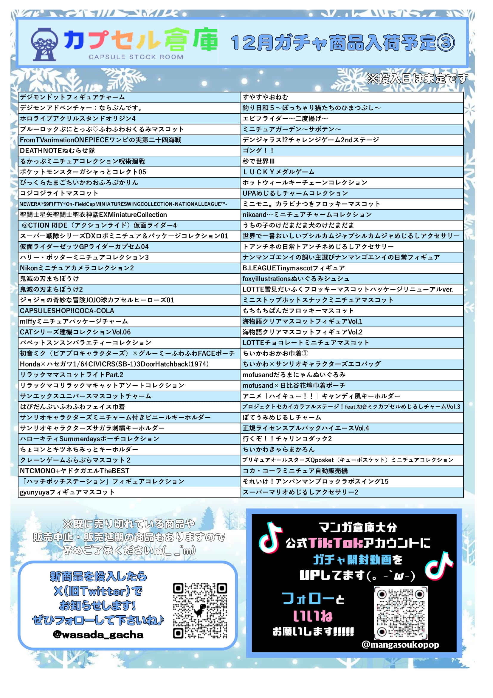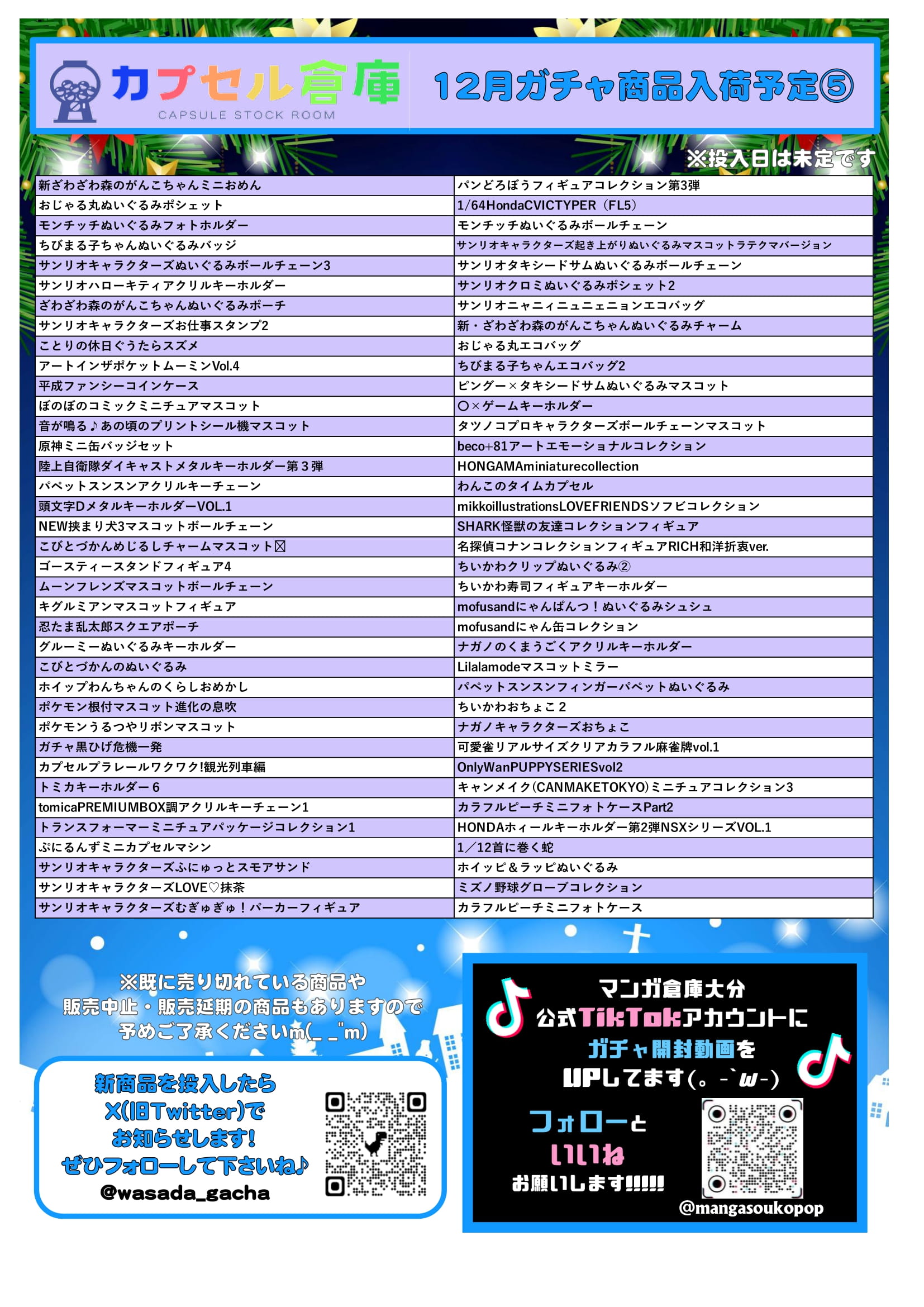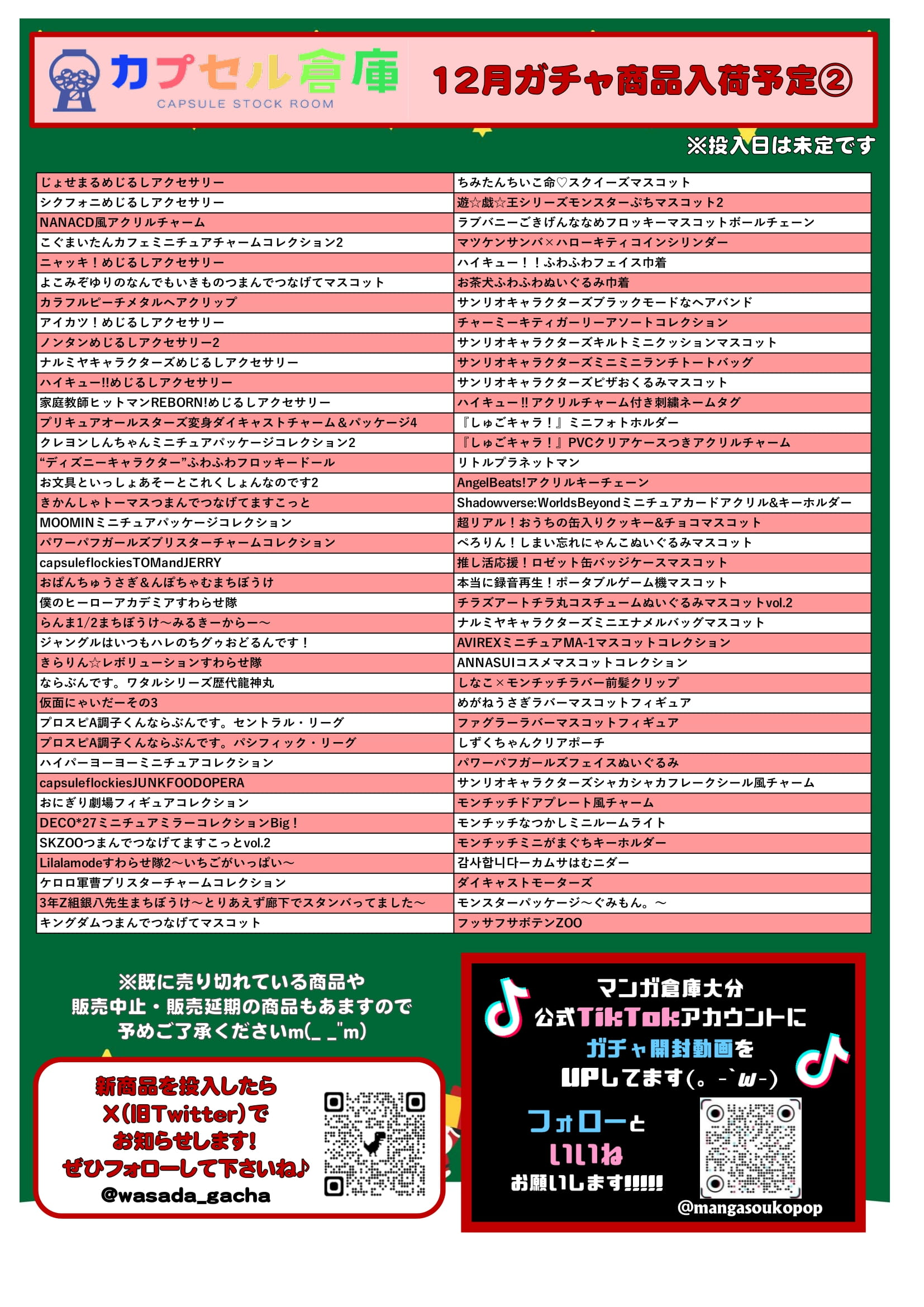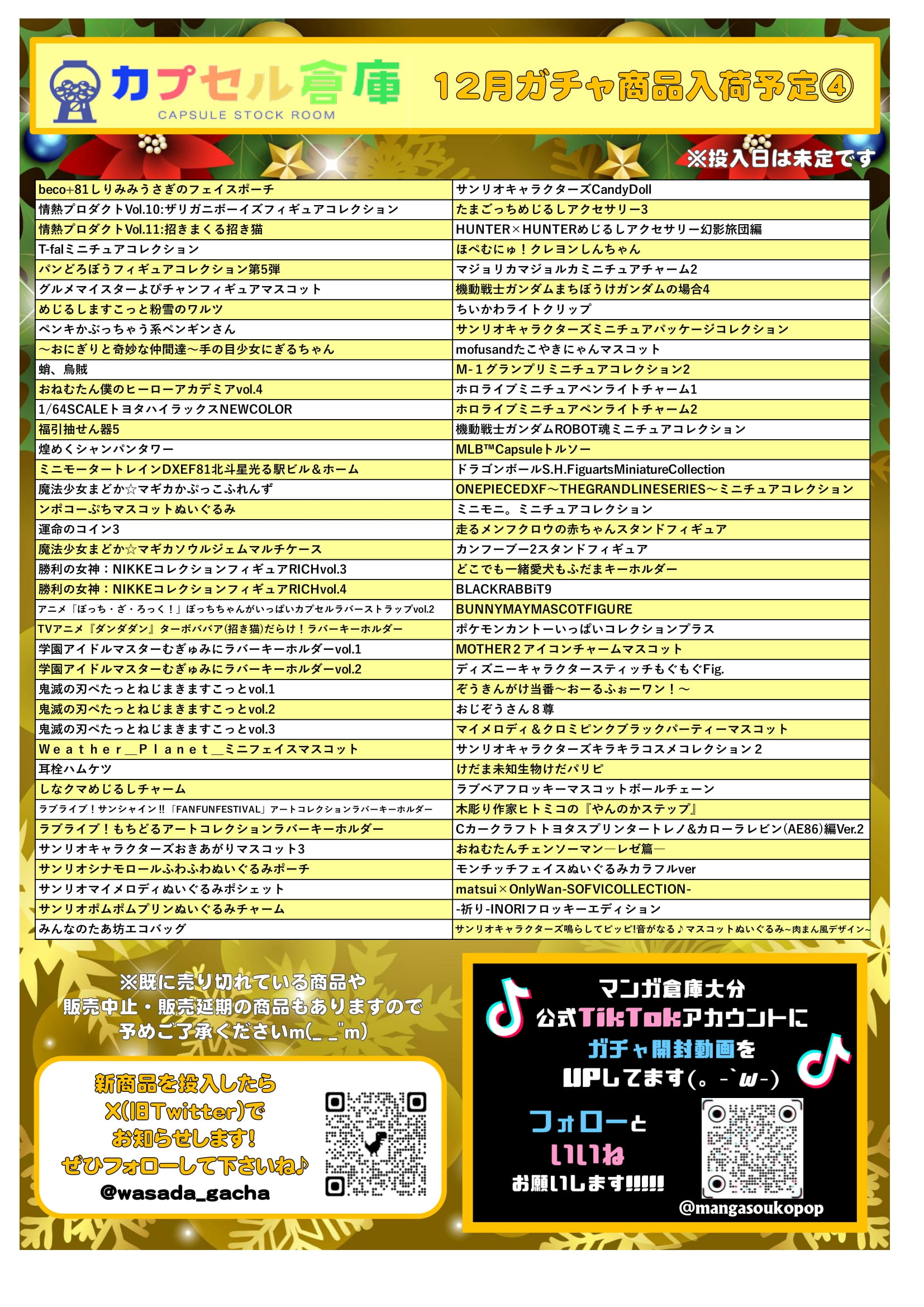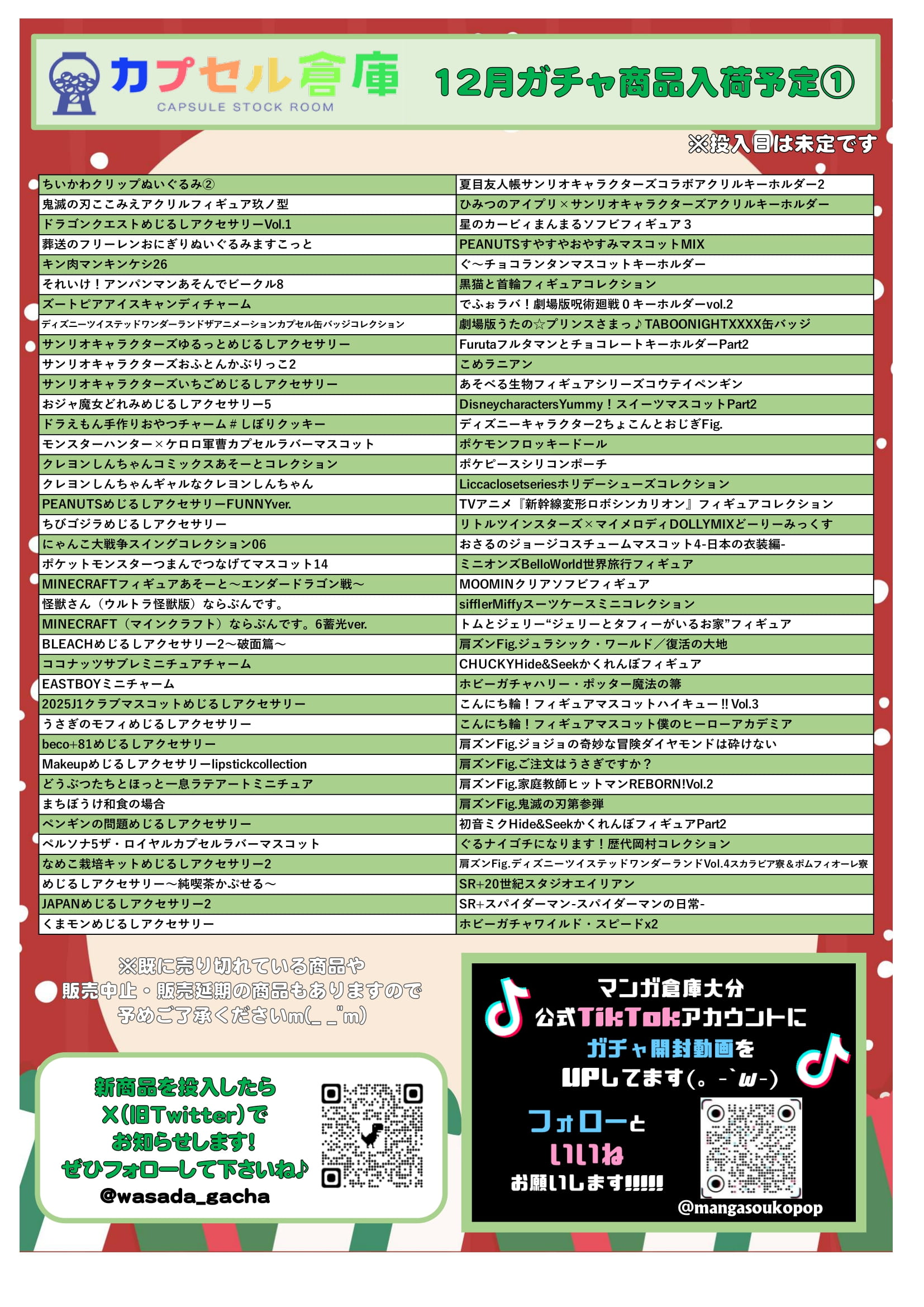 さらにマンガ倉庫大分公式TikTokアカウントにてガチャガチャ開封動画をUPしてます🤩