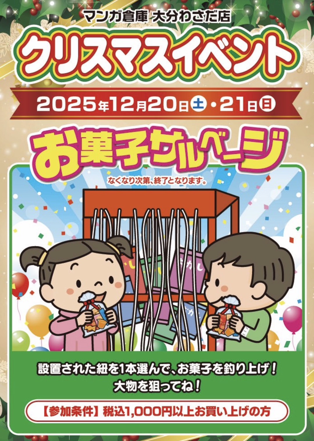 @mangasouko.oita.pop 🌟🌲メリーメリークリスマス🌲🌟 サンタさんにお願いイベントの当選者発表ですが、サンタさんがはやく皆んなにプレゼントを渡したいという事で、明日12月20日から12月25日まで❗️店頭で発表しまーす💕 わさだ店、東店で合計40名様に欲しかったプレゼントが当選します🥳✨✨ 半券を持って是非各店にご来店下さい❤️ お待ちしております🌟🌟🌟 #マンガ倉庫 #大分 #クリスマス #イベント #プレゼント ♬ Christmas Is Coming – DM Production