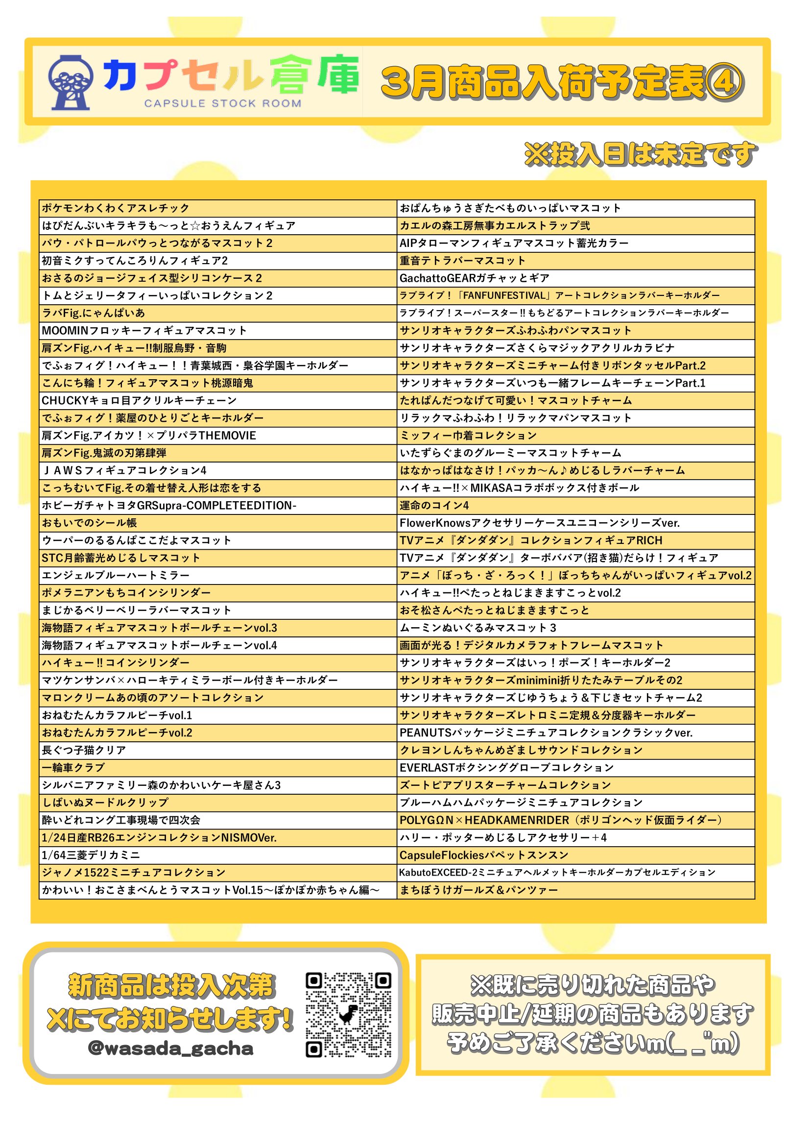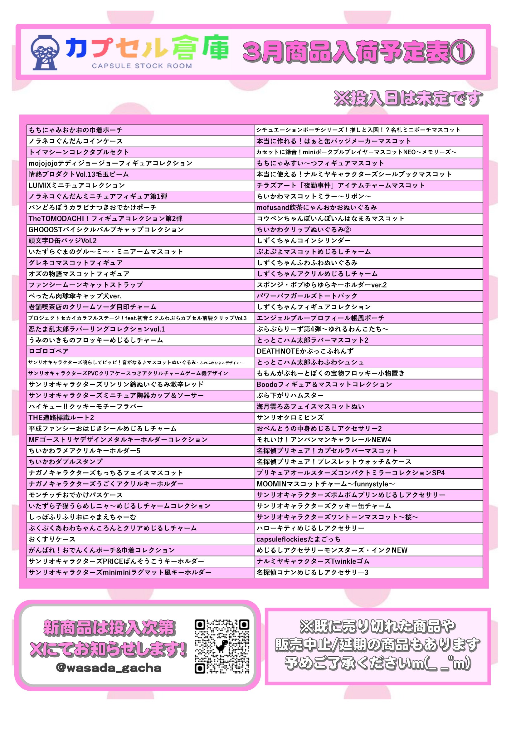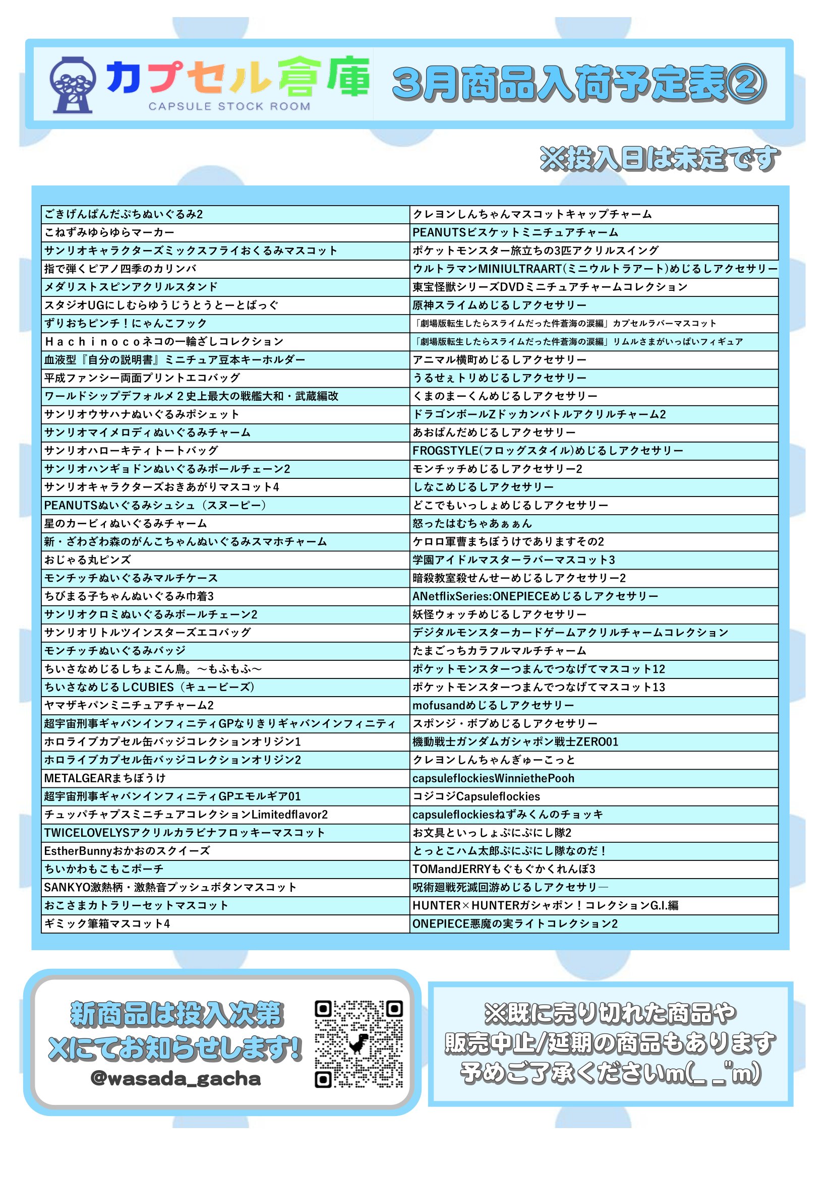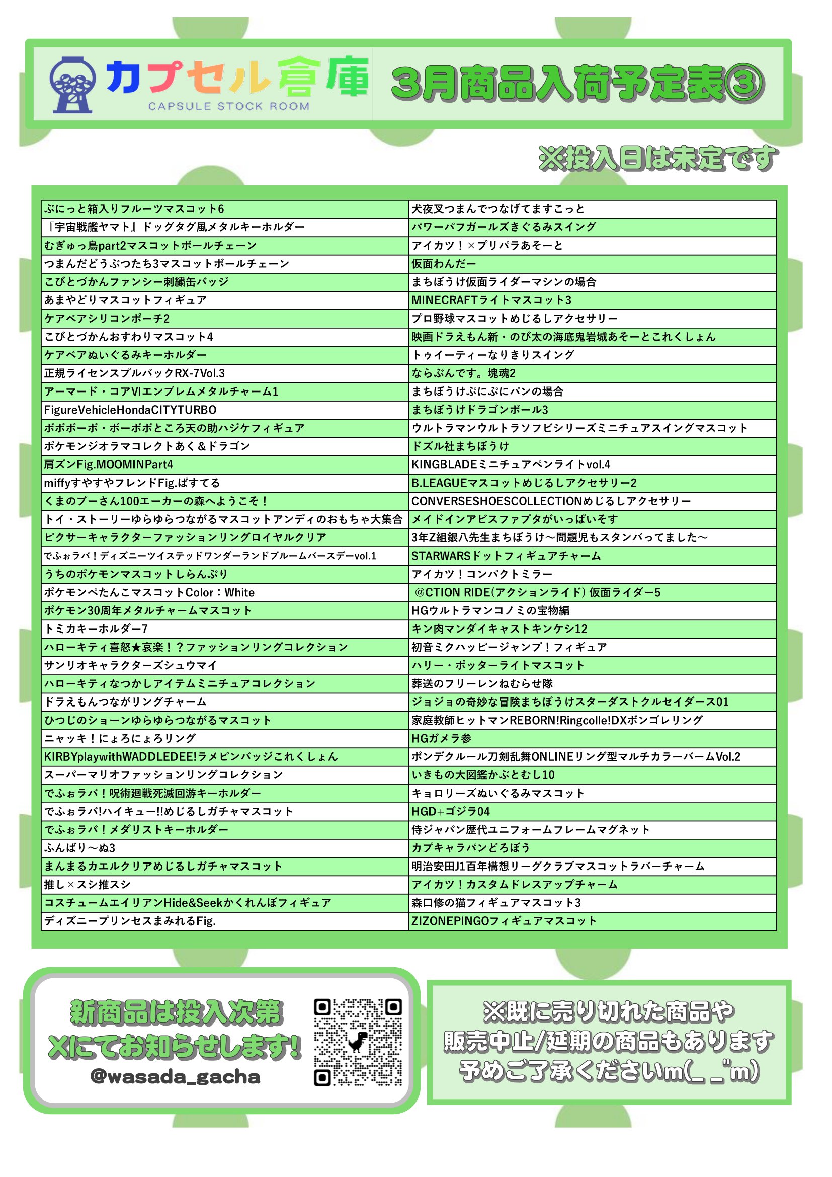 カプセル倉庫3月商品入荷予定表🎎