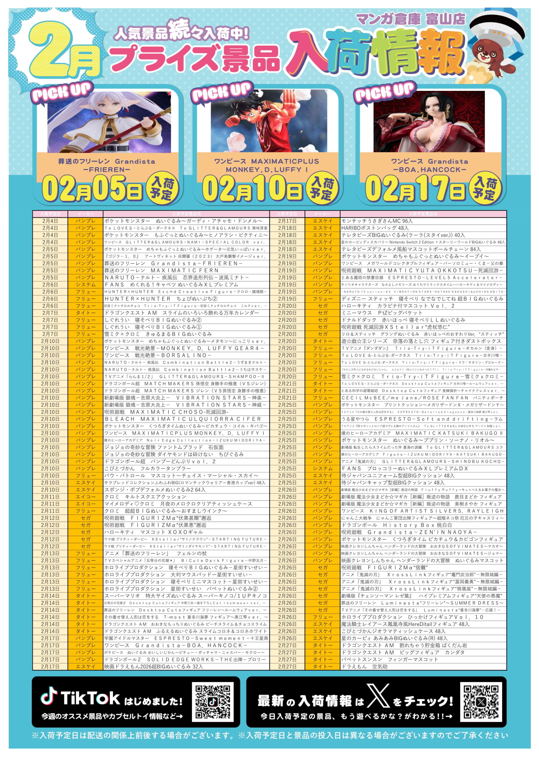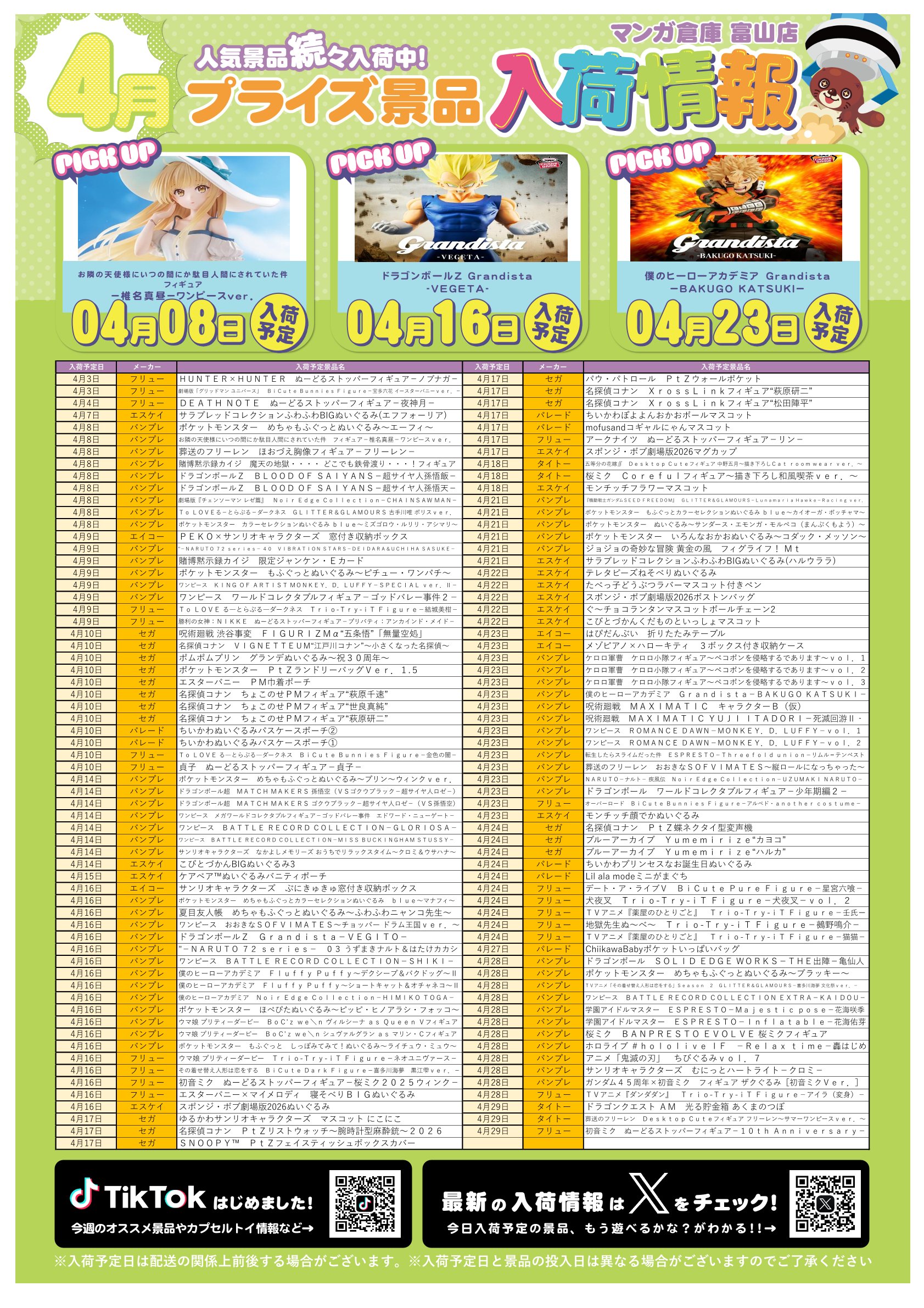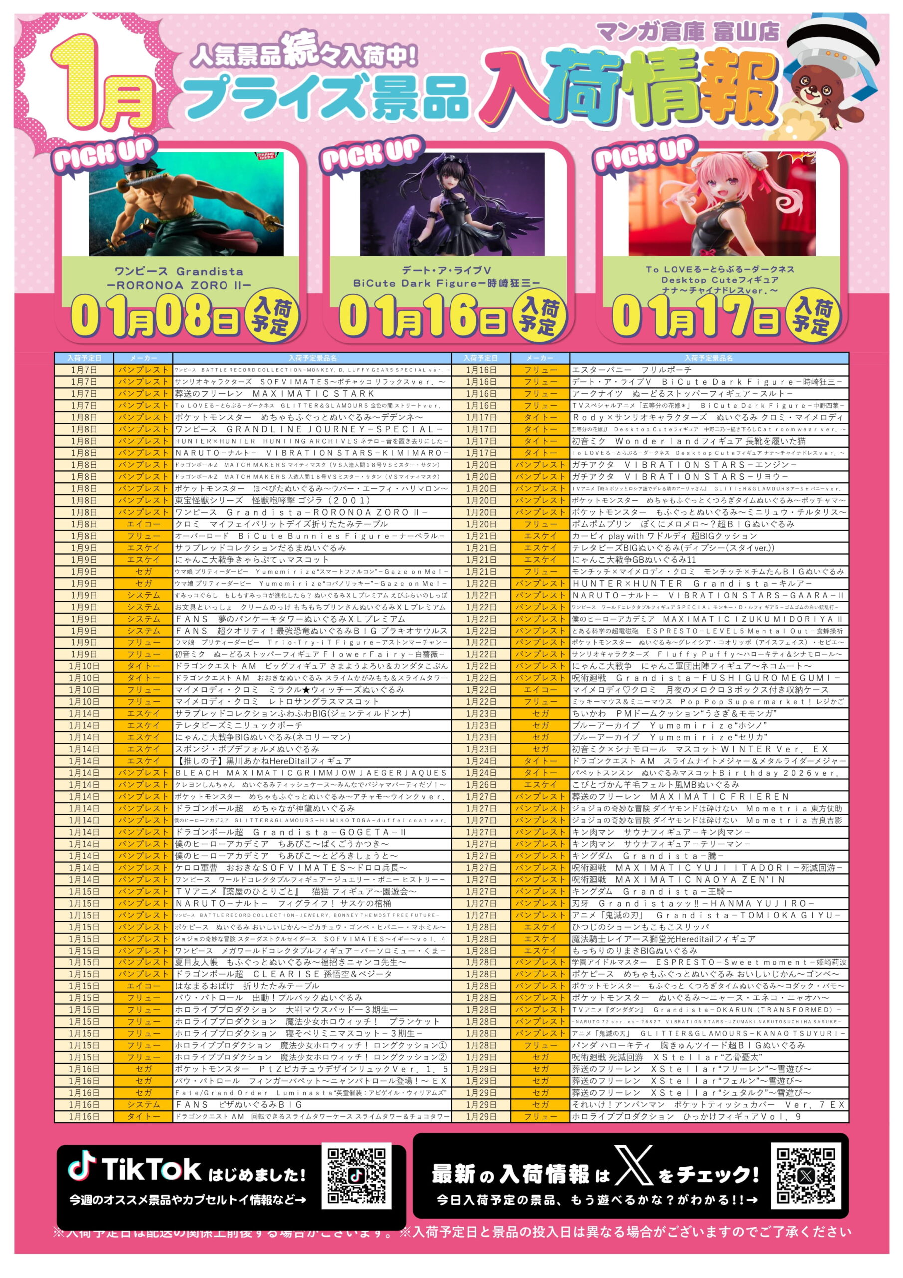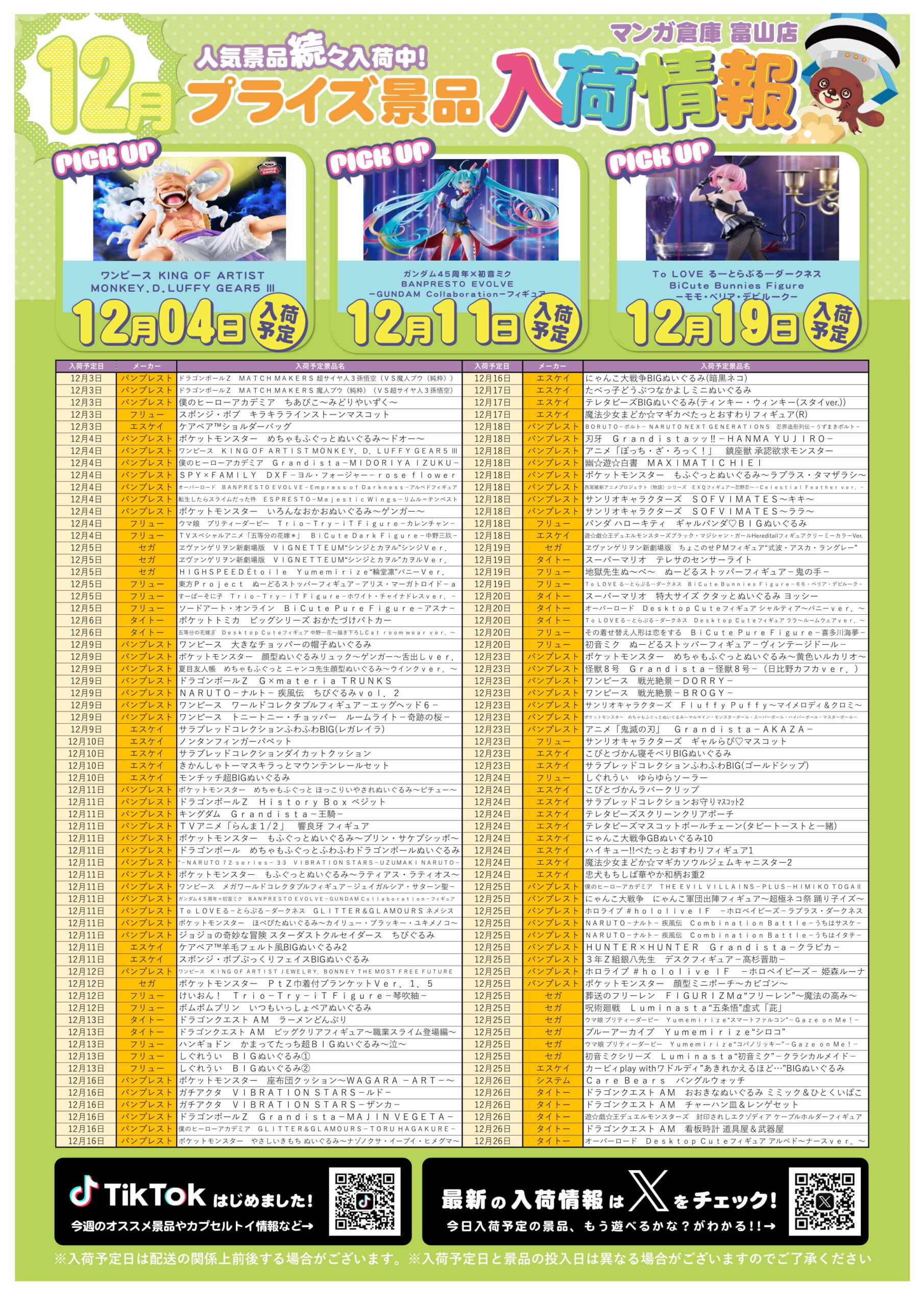 アミューズ景品入荷情報