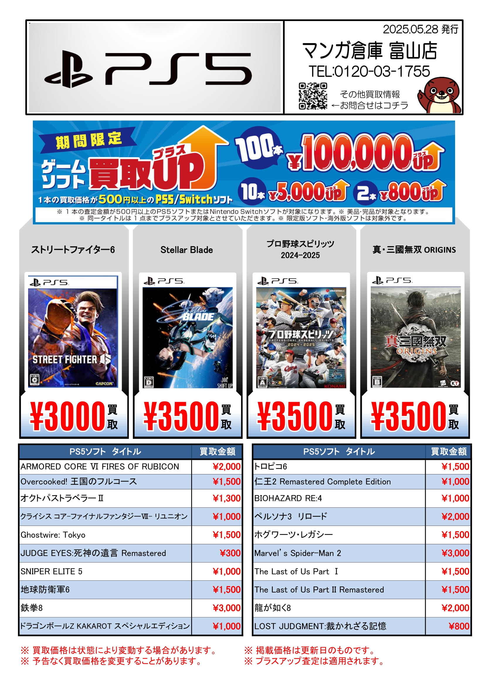 【買取強化!】本日のゲームハード買取価格【求ム本体!】#ゲーム 買取情報 ゲーム 2025年6月8日 ゲーム機本体まだまだ買います! SWI・PS5本体強化中! たか~く買取させていただきます! ぜひ当店までお持ちください! ※2025/6/8現在の価格となっております。 状況によりお値段が変動する場合がございます。 ◆◇◇◆◆◇◇◆◆◇◇◆◆◇◇◆◆◇◇◆◆◇◇◆◆◇◇◆◆◇◇◆◆◇◇◆◆◇◇◆ ・最新のイベント情報はこちら ・最新の買取情報はこちら