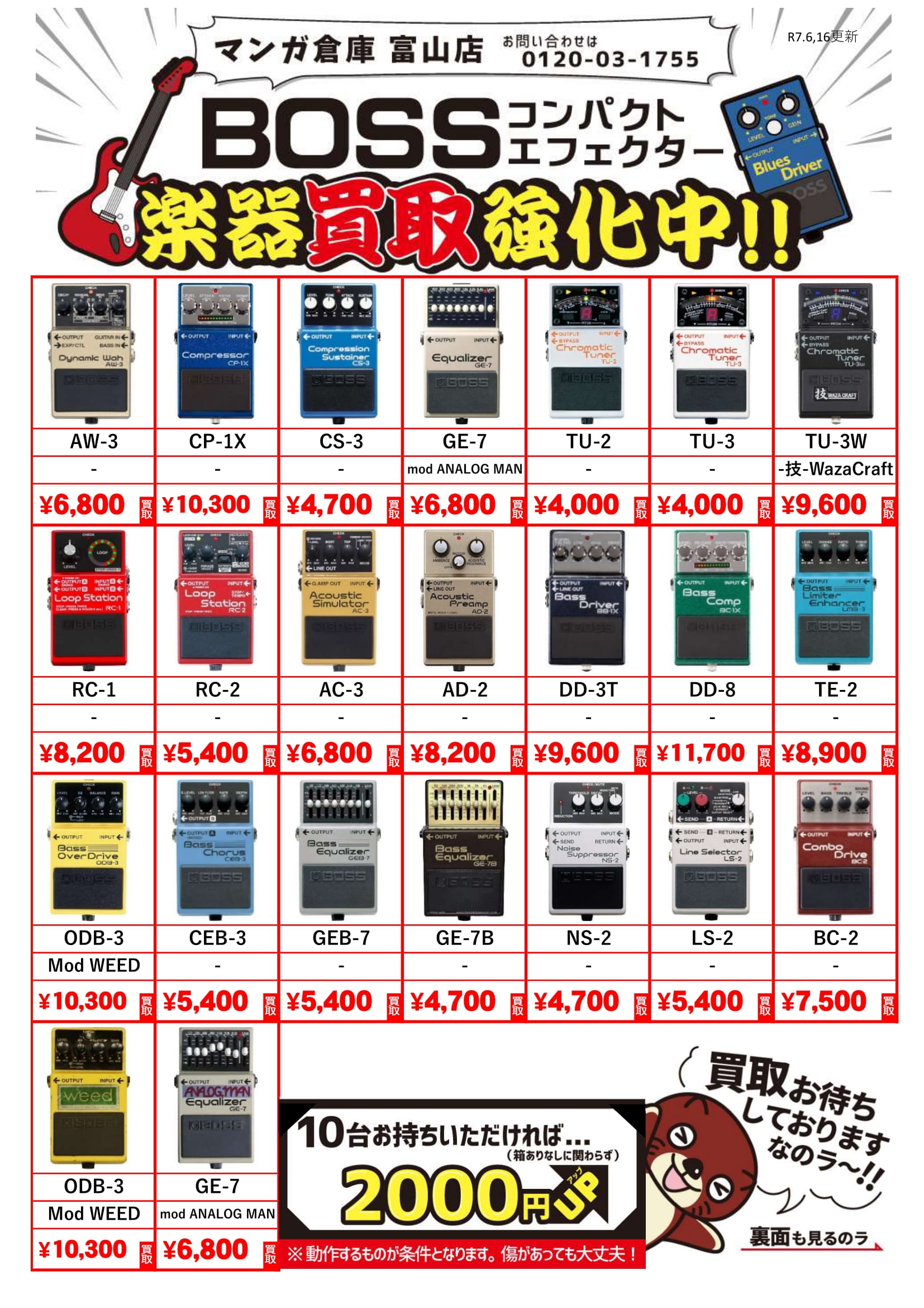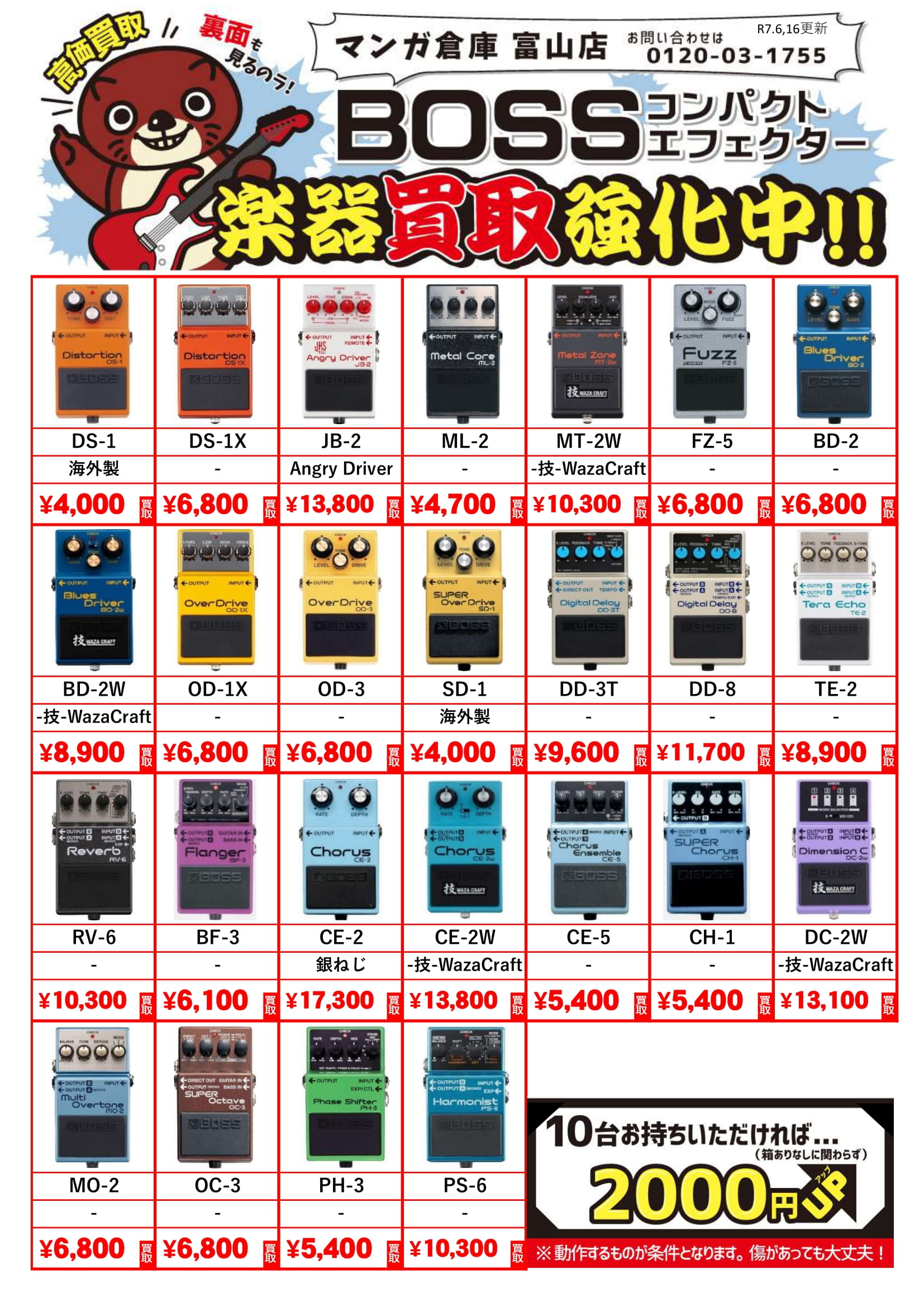 ◆BOSS コンパクトエフェクター買取強化中!◆ 買取情報 楽器 2025年6月16日 🎸買取情報🎸 ※2025/6/16現在の価格となっております。 状況によりお値段が変動する場合がございます。 ◆◇◇◆◆◇◇◆◆◇◇◆◆◇◇◆◆◇◇◆◆◇◇◆◆◇◇◆◆◇◇◆◆◇◇◆◆◇◇◆ ・最新のイベント情報はこちら ・最新の買取情報はこちら