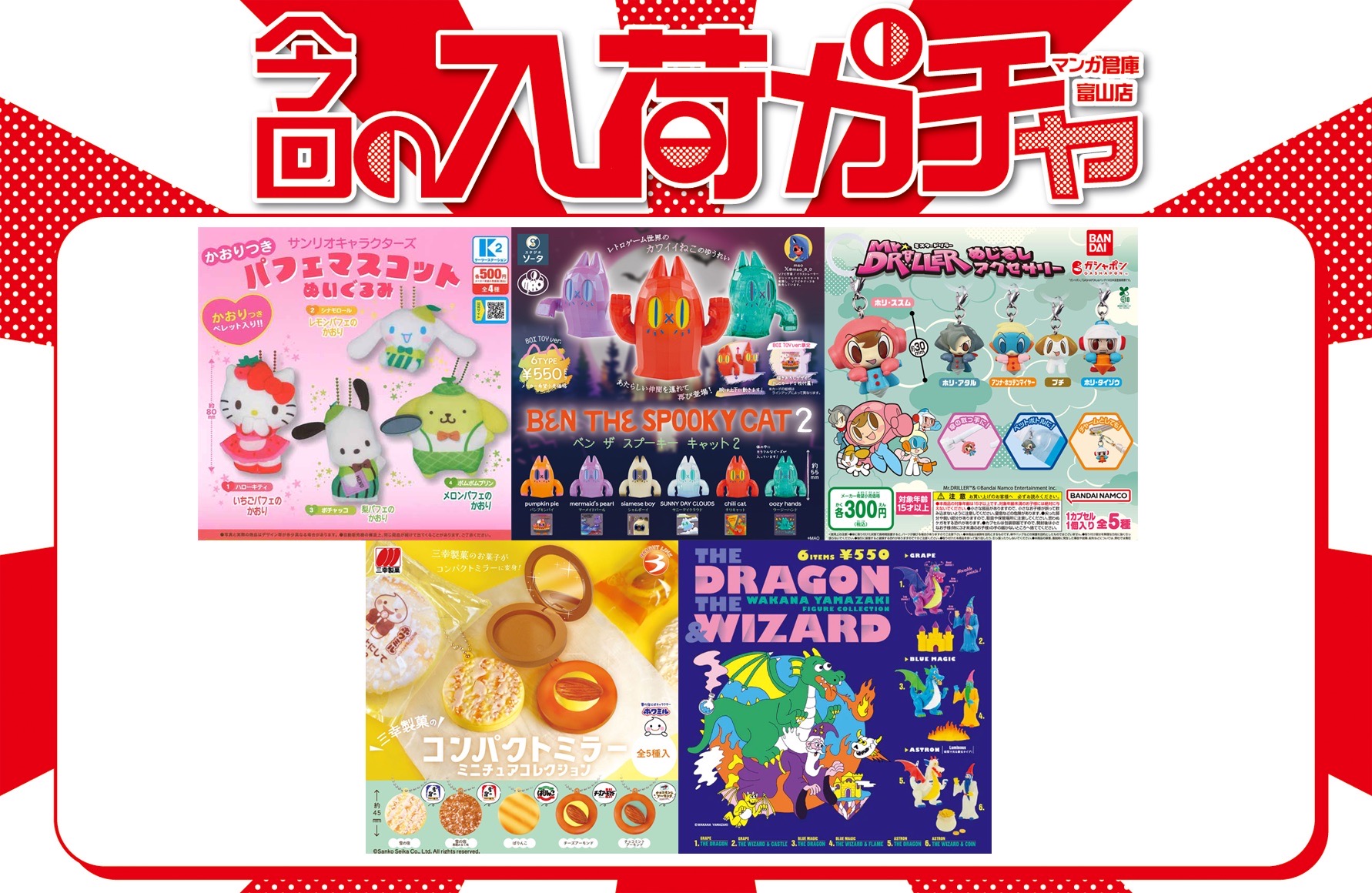 おもちゃ 入荷情報《✨️カプセルトイ 入れ替え✨️ 📢 本日入荷の商品はこちら❗》 おもちゃ 2025年8月8日 【おもちゃ 入荷情報】 ✨️カプセルトイ 入れ替え✨️ 📢 本日入荷の商品はこちら❗ 🐉 山崎若菜 THE DRAGON & WIZARD フィギュアコレクション 🍘 三幸製菓のコンパクトミラーミニチュアコレクション 🍰 サンリオキャラクターズ かおりつきパフェマスコットぬいぐるみ 😾 BEN THE SPOOKY CAT 2 🎮 ミスタードリラー めじるしアクセサリー 是非チェックしてみて下さい🙌 ******************** ★〖おもちゃ〗買取・入荷情報は👉こちら★