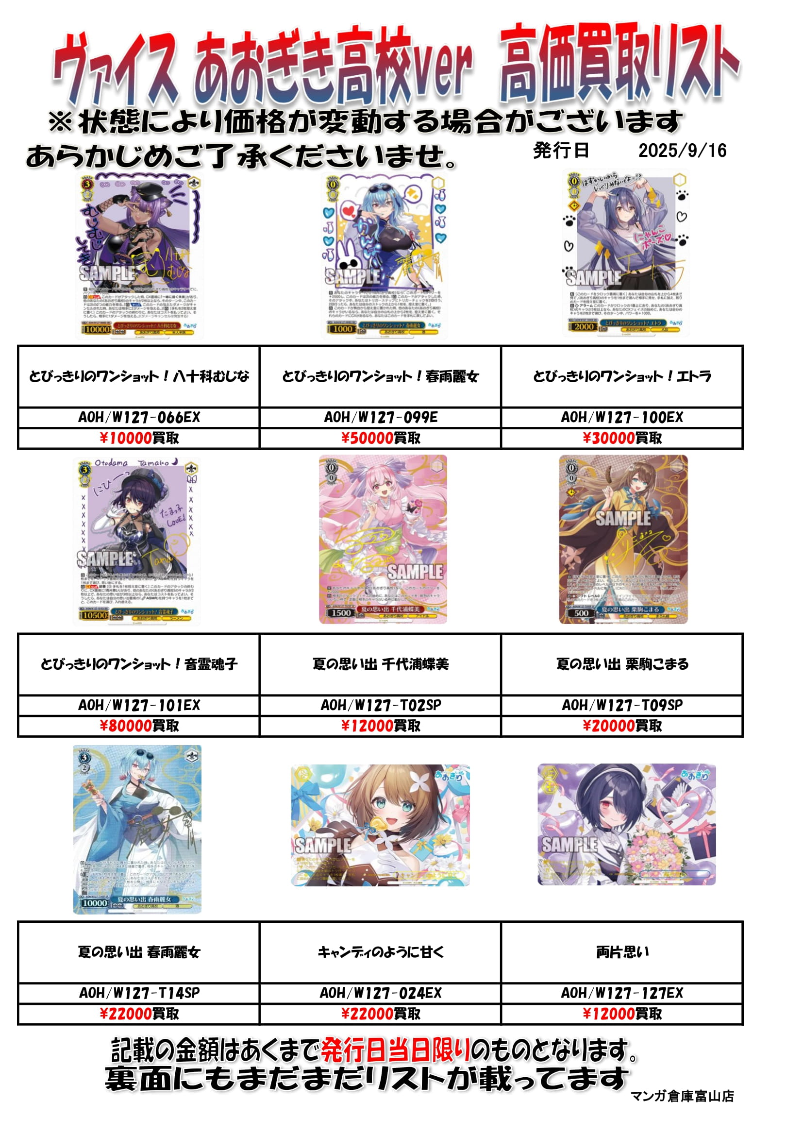 カード 買取告知《ヴァイスチラシ》 買取情報 カード 2025年9月16日 【カード 買取告知】 ヴァイスチラシ 買取告知 更新しました! ヴァイス あおぎり高校 買取お待ちしております! ※2025/9/16 現在の価格となります。 在庫状況などによってお値段が変動いたします。予めご了承ください。 ******************** ★〖カード〗買取告知は👉こちら★