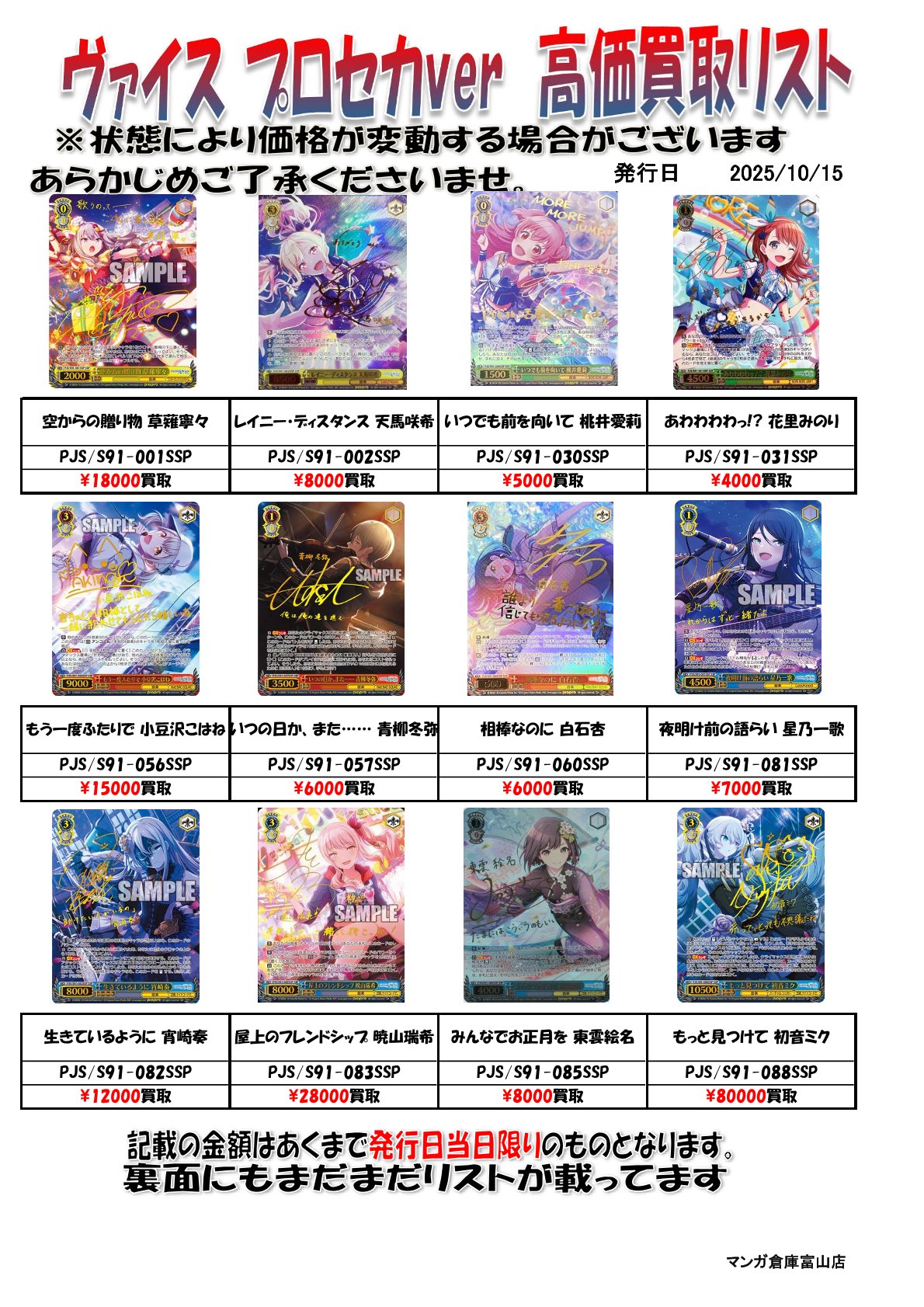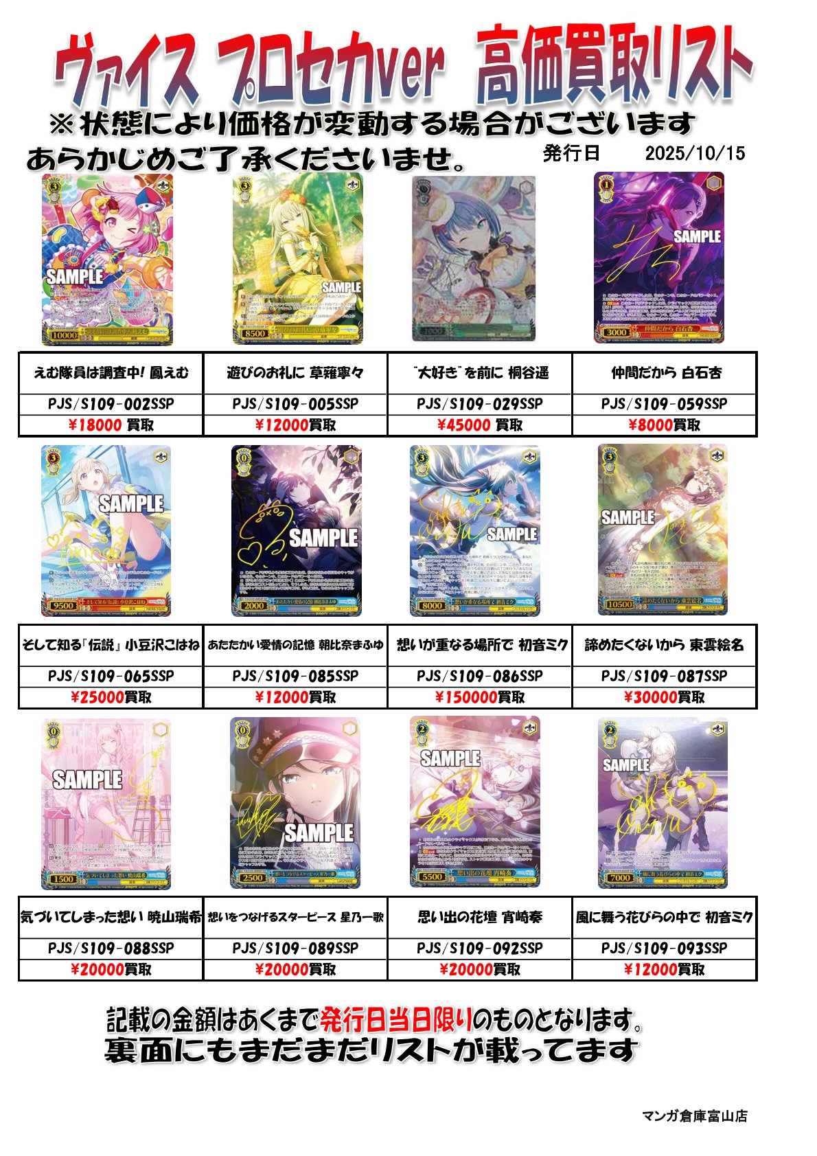 カード 買取告知《ヴァイスチラシ》 買取情報 カード 2025年10月15日 【カード 買取告知】 ヴァイスチラシ 買取告知 更新しました! ヴァイスシュバルツ高価買取中 ※2025/10/15 現在の価格となります。 在庫状況などによってお値段が変動いたします。予めご了承ください。 ******************** ★〖カード〗買取告知は👉こちら★