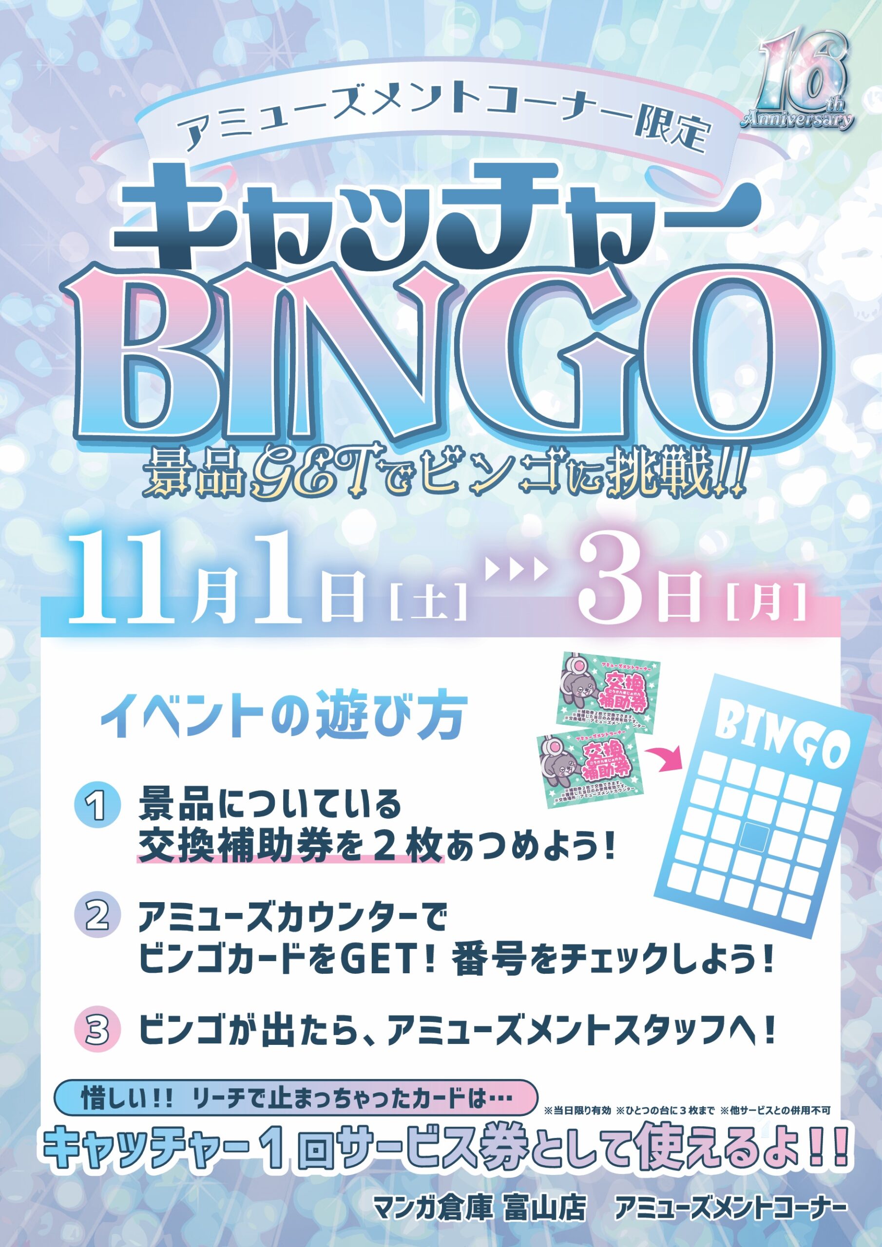 アミューズメントコーナー限定キャッチャーBINGO【11/1~3日】