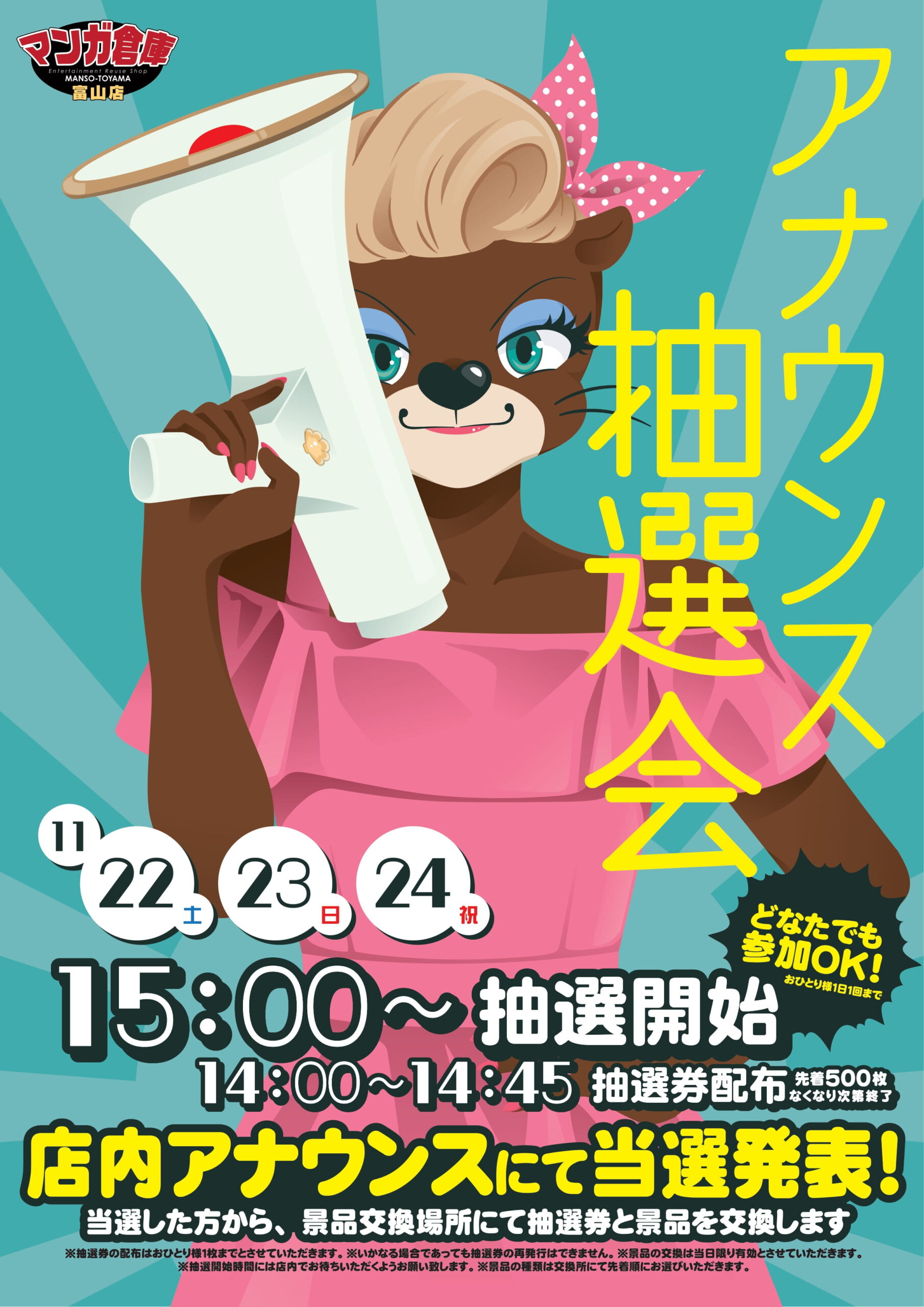 イベント情報《アナウンス抽選会》【11月22日~24日】 イベント情報 2025年11月19日 イベント情報! 📢アナウンス抽選会【11月22日~24日】 📢アナウンス抽選会 開催!! 11/22㈯23㈰24㈪ 各日15時~抽選開始!! 抽選券の配布は14時~45分まで なくなり次第終了です 3連休もマンガ倉庫でお待ちしてます ◆◇◇◆◆◇◇◆◆◇◇◆◆◇◇◆◆◇◇◆◆◇◇◆◆◇◇◆◆◇◇◆◆◇◇◆◆◇◇◆ ・最新のイベント情報はこちら ・最新の買取情報はこちら