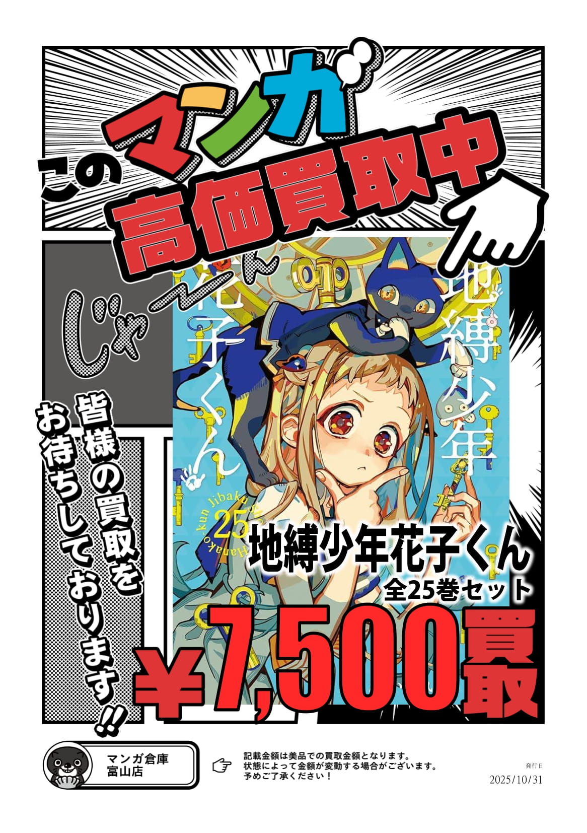 コミック/書籍 買取告知《地縛少年花子くん》 買取情報 コミック/書籍 2025年11月5日 【コミック/書籍 買取告知】 地縛少年花子くん 買取告知 更新しました! 高価買取中 ※2025/11/5現在の価格となります。 在庫状況などによってお値段が変動いたします。予めご了承ください。 ******************** ★〖コミック/書籍〗買取告知は👉こちら★