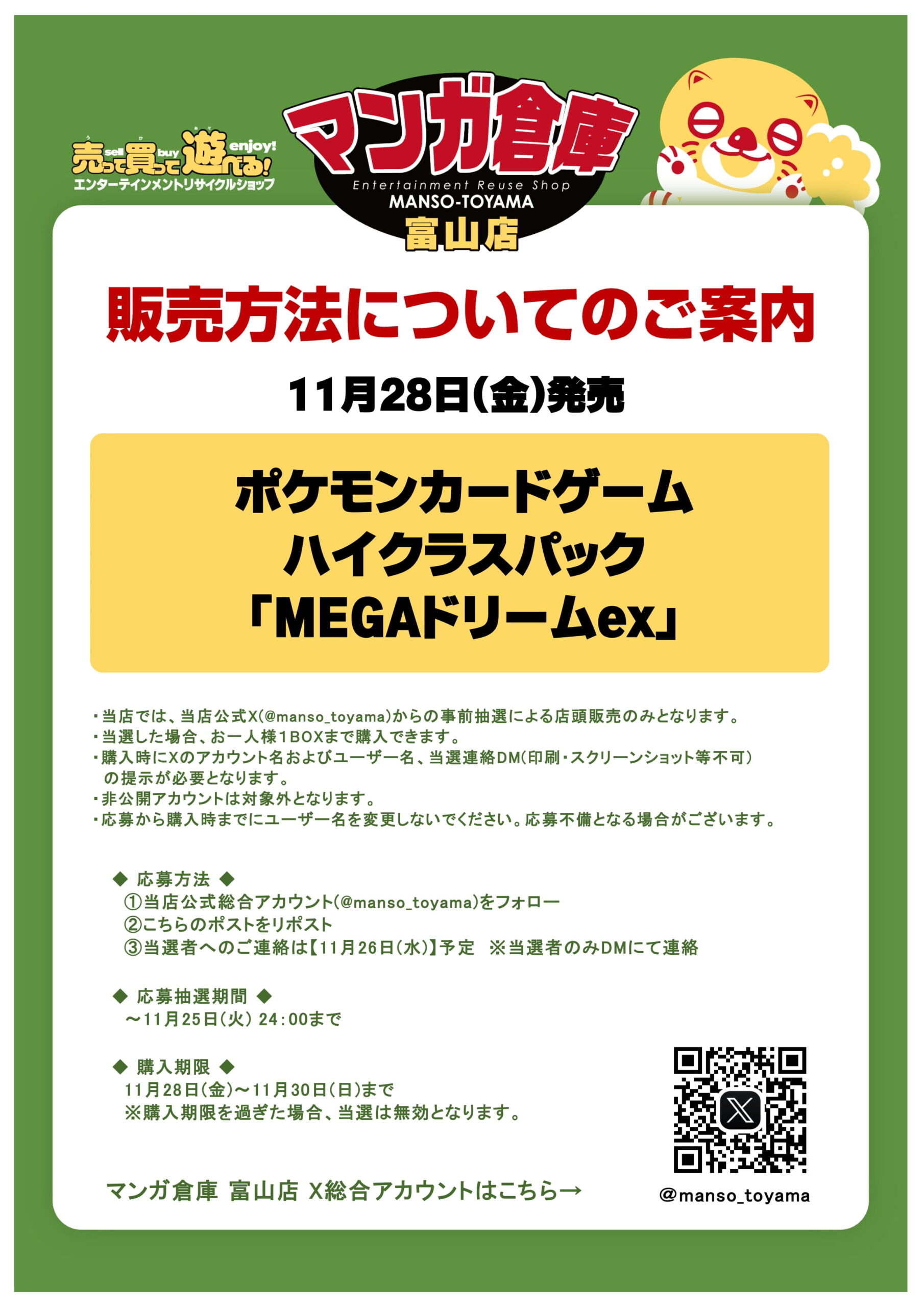 抽選販売のご案内【11/28発売ポケモンカード MEGAドリームex 】
