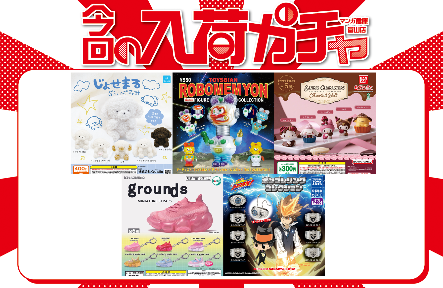 ✨️カプセルトイ 情報✨️ 📢 本日オススメの商品はこちら❗ ガチャ カプセルトイ 2026年1月30日 ✨️カプセルトイ 情報✨️ 📢 本日オススメの商品はこちら❗ 👟 grounds ミニチュアストラップ 💍 ボンゴレリングコレクション 🍫 サンリオキャラクターズ Chocolate Doll 🤖 トイズビアン ロボメミョン フィギュアコレクション 🐶 じょせまる ぬいぐるみ 他にもガチャポン沢山あります✊ 是非チェックしてみて下さい🙌