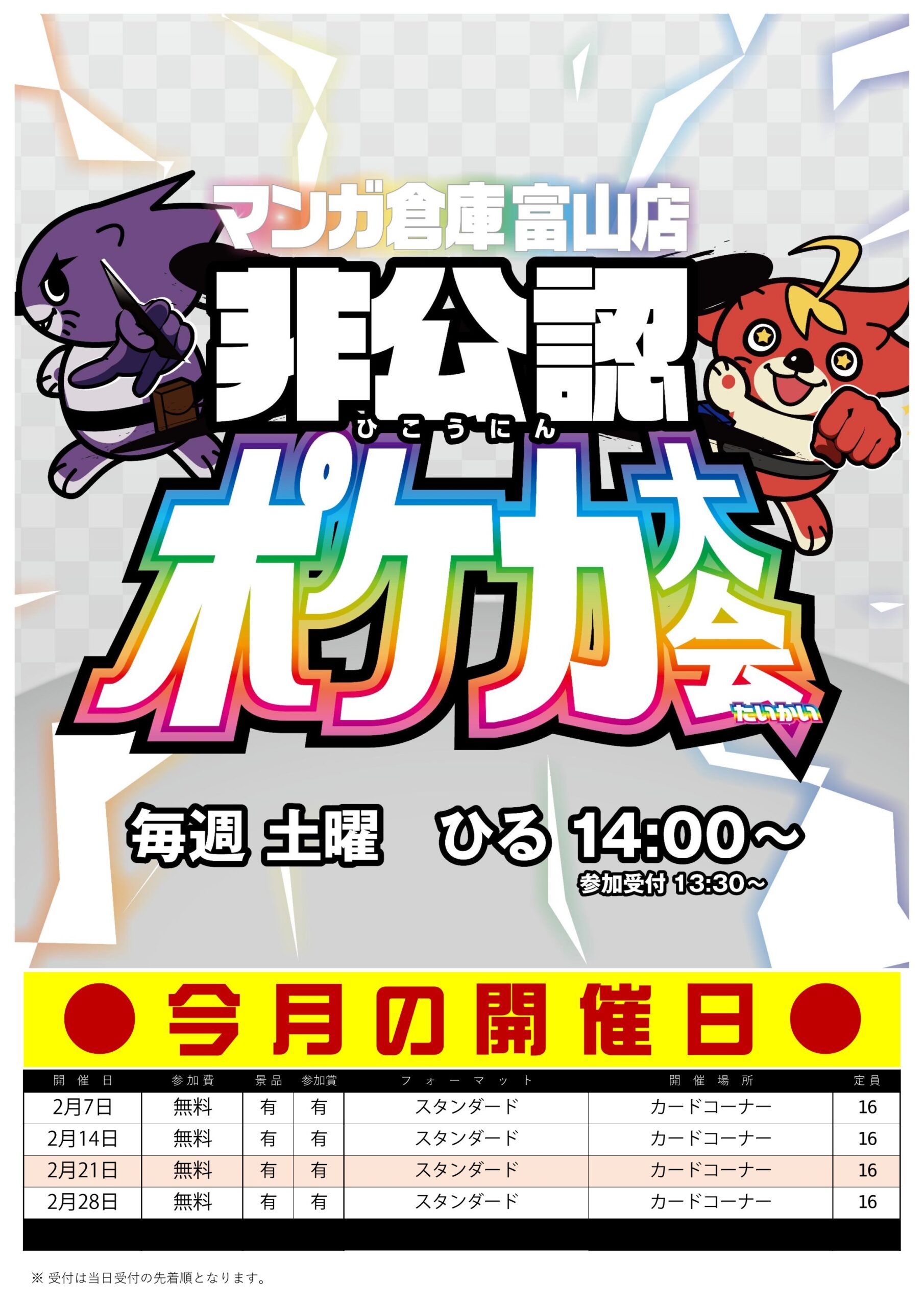 イベント情報《【デュエマ・ポケモン】2月のマンソーカード大会【毎週土曜日】》 イベント情報 カード 2026年2月4日 イベント情報! 【デュエマ・ポケモン】2月のマンソーカード大会【毎週土曜日】 マンソーカード大会(非公認) 2月の開催は… ★デュエルマスターズ【土曜 あさ10時~】 ★ポケモンカード【土曜 ひる14時~】 受付は各回開催の30分前より、先着順です 参加賞あり!優勝賞品あり! 来月も皆様のご参加お待ちしております✨ ◆◇◇◆◆◇◇◆◆◇◇◆◆◇◇◆◆◇◇◆◆◇◇◆◆◇◇◆◆◇◇◆◆◇◇◆◆◇◇◆ ・最新のイベント情報はこちら ・最新の買取情報はこちら