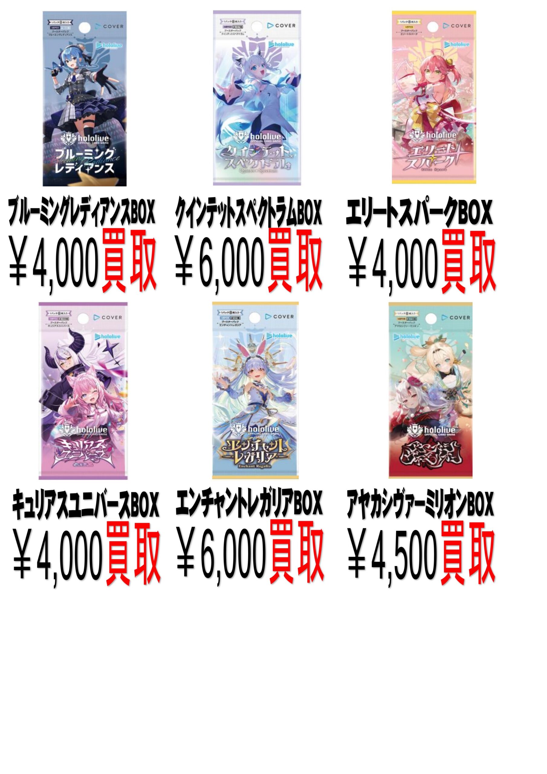 カード 買取告知《ホロカBOX買取》 買取情報 カード 2026年2月28日 【カード 買取告知】 ホロカBOX買取 買取告知 更新しました! ホロカBOX高価買取中 ※2026/2/28 現在の価格となります。 在庫状況などによってお値段が変動いたします。予めご了承ください。 ******************** ★〖カード〗買取告知は👉こちら★