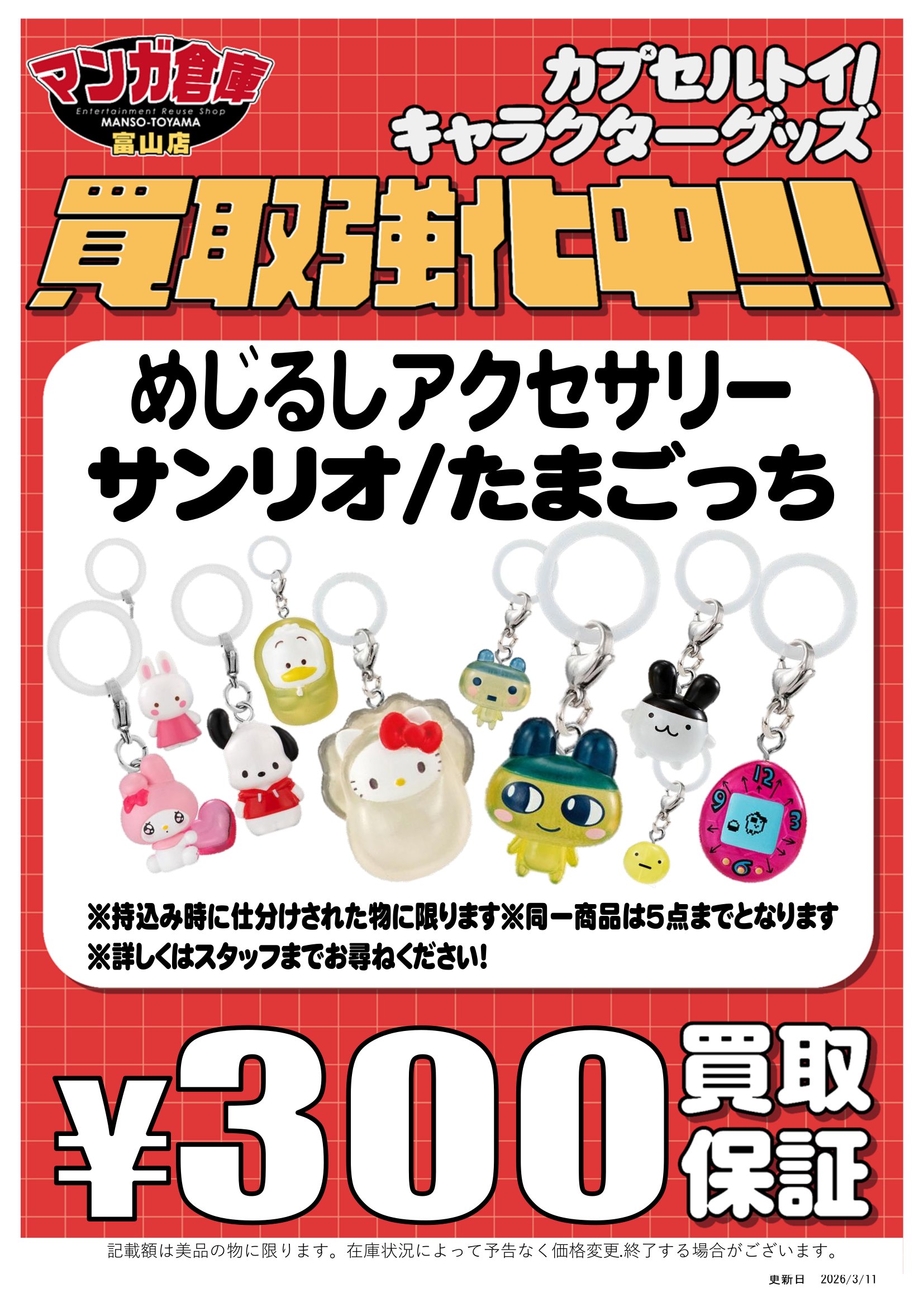 おもちゃ 買取告知《サンリオ/たまごっち めじるしアクセサリー買取保証》 買取情報 おもちゃ 2026年3月11日 【おもちゃ 買取告知】 サンリオ/たまごっち めじるしアクセサリー買取保証 買取告知 更新しました! サンリオ/たまごっち めじるしアクセサリー買取保証はじめました❣️👀 是非当店までお持ちください✨ ※2026/3/11 現在の価格となります。 在庫状況などによってお値段が変動いたします。予めご了承ください。 ******************** ★〖おもちゃ〗買取告知は👉こちら★