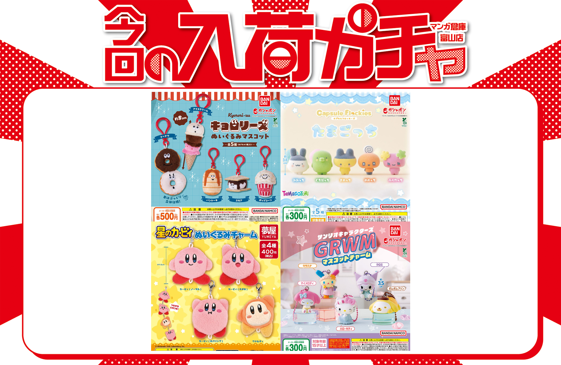 カプセルトイ 入荷情報《📢 本日オススメの商品はこちら❗》 カプセルトイ 2026年4月3日 【カプセルトイ 入荷情報】 ✨️カプセルトイ 情報✨️ 📢 本日オススメの商品はこちら❗ 🍦 キョロリーズ ぬいぐるみマスコット 🍳 capsule flockies たまごっち 🛁 サンリオキャラクターズ GRWMマスコットチャーム 🌟 星のカービィ ぬいぐるみチャーム 他にもガチャポン沢山あります✊ 是非チェックしてみて下さい🙌 ******************** ★〖おもちゃ〗買取・入荷情報は👉こちら★