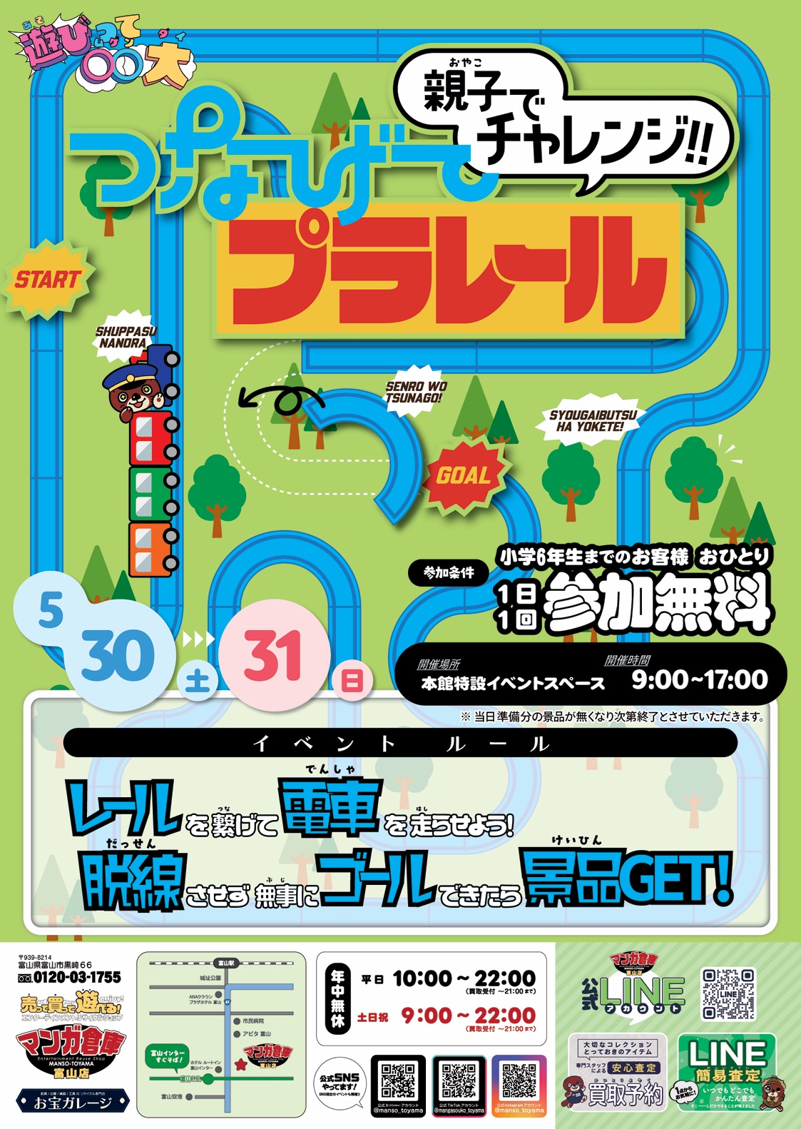 親子でチャレンジ!!つなげてプラレール【5/30・31】
