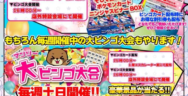 ✨🌸マンガ倉庫山口店の4月のイベントです🌸✨ 🎯🌸マンソー大ビンゴ大会inジコンナ🌸🎯 4月5日…