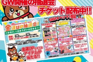 ゴールデンウィークの情報大解禁‼️ 🎯金運アップ抽選会👑 本日より配布開始‼️ 5/2〜5/6までガラポン抽選会開催 金運アップしそ…
