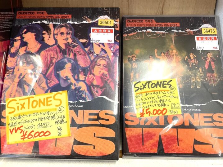CD・DVDコーナーからのお知らせ! 人気男性アイドルグループ「SixTONES」ライブDVD販売中です! 最新の「VVS」を始め、映像作品を多数取り揃えております! 通常版の他に、特典映像の付いた限定盤もございます! …