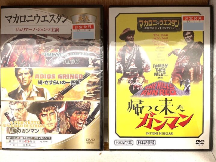 CD・DVDコーナーからのお知らせ! マカロニ・ウエスタン(イタリア製西部劇)シリーズ、DVD販売中です! クリントイーストウッドを始め、シブくてカッコイイ俳優たちが揃い踏みしております 「帰って来たガンマン」「荒野の用…