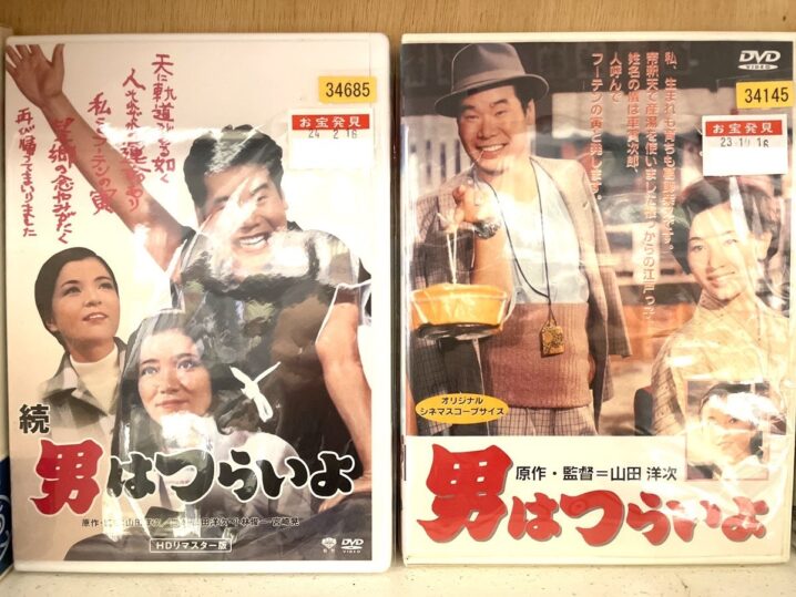 CD・DVDコーナーからのお知らせ! 誰もが知る人情映画「男はつらいよ」 第一作目が公開されてから55年が経ちました! 当店でもDVDを販売中です! 渥美清さん演じる寅次郎の粋な口上はいつ見てもお見事です! 「男はつらい…
