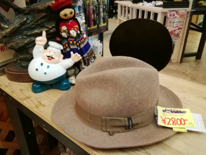帽子コーナーより🎩 DIESEL 中折れフェルトハット入荷しました! マンガ倉庫山口店では冬物帽子の買取も大歓迎です! ニット帽、フェルトハット、ボア付きのキャップなど まだまだ足りません! ぜひマンガ倉…