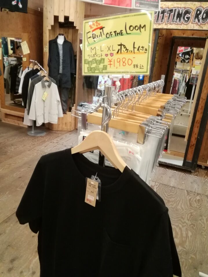 メンズコーナーより FRUIT OF THE LOOMの胸ポケットTシャツ ブラック ホワイト カーキ 三色入荷しました‼️ 今回もサイズは3パターン M、L、XLご用意しており…