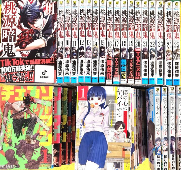 本コーナーより コミック買取情報! チェンソーマン 僕の心のヤバイやつ 桃源暗鬼 1~25巻 全巻 買い取らせて頂きました! ありがとうございます! ガチアクタ 顔に出ない柏田さんと顔に出る太田君 さわらないで 小手指く…