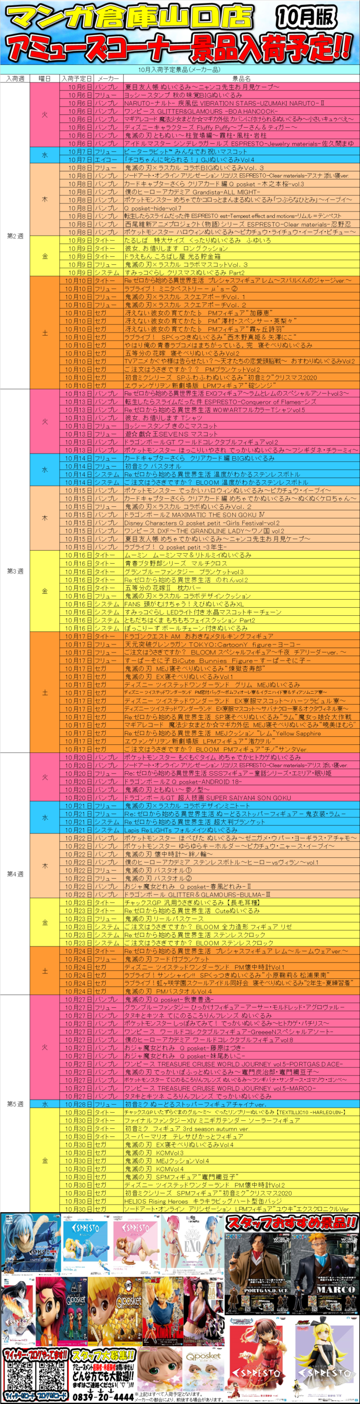 アミューズメントコーナーより 11月入荷予定景品リストのご紹介です! 是非当店でゲットしちゃってください(*´ω`*)
