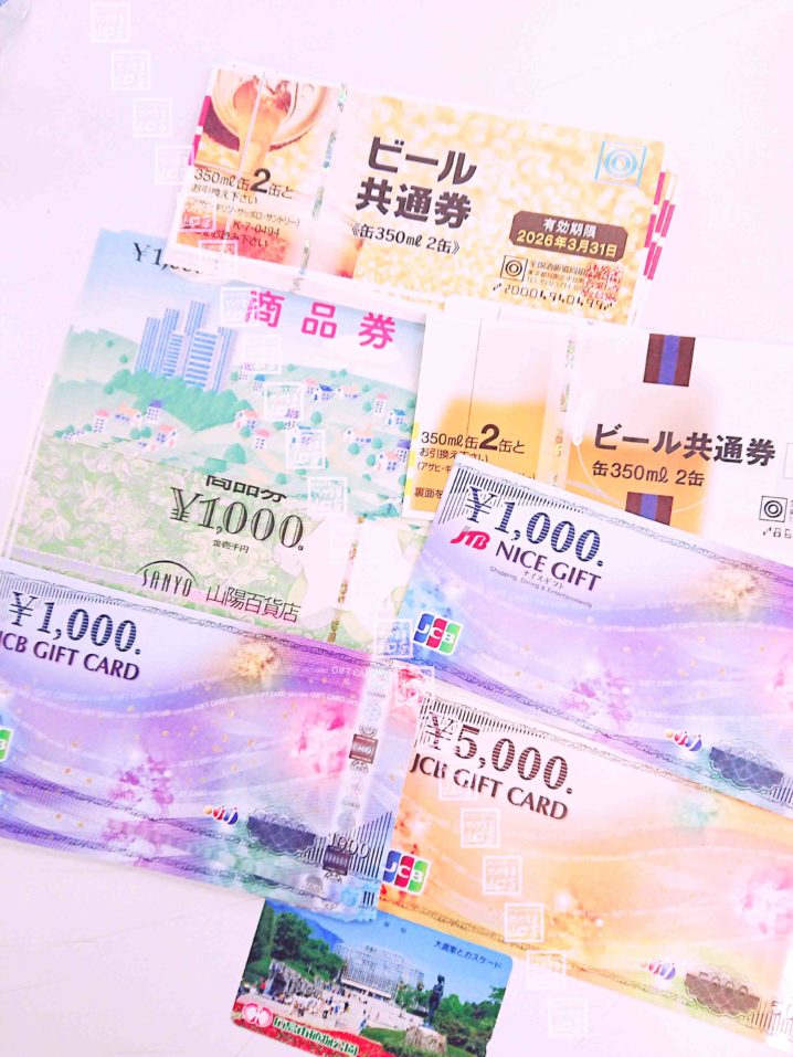 ・全国百貨店共通商品券(そごう・西武) ・ニコスギフトカード500円、1000円 ・JCBギフトカード(旧券) ・JCBギフトカード1000円 ・JCBギフトカードナイスギフト5000円 ・クオカード1000円、1万円 …