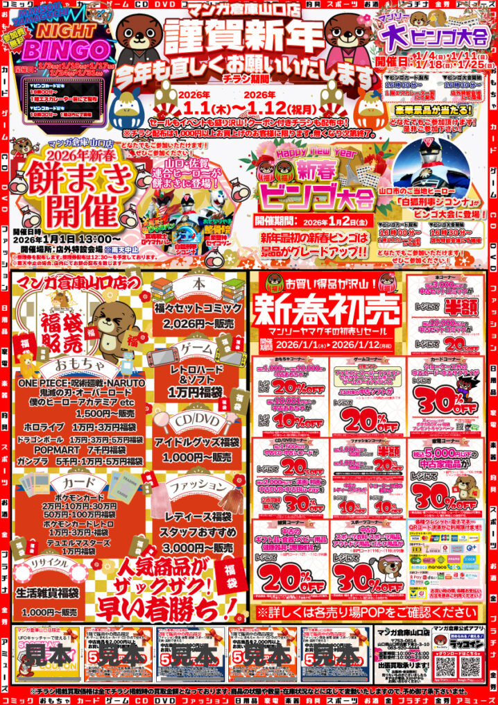 🎍マンガ倉庫山口店の1月のイベントです🎍 🎍🌅新年明けましておめでとうございます❗️🌅🎍 本年も…