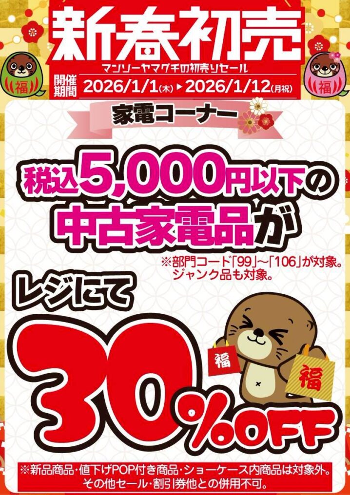 1/1~1/12★家電コーナー 初売りセール開催中!