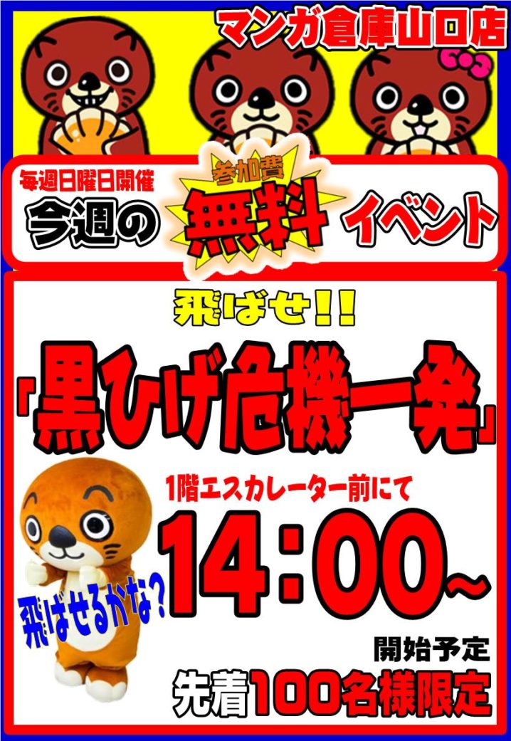 マンガ倉庫山口店9月のイベントご案内! 週末BINGOや日曜日のミニゲームイベントなどなど盛りだくさんです! ★9月の毎週日曜日は週末BINGO!★ 参加費はもちろん無料! 今月は17時から開催いたします! 皆様のご参加…