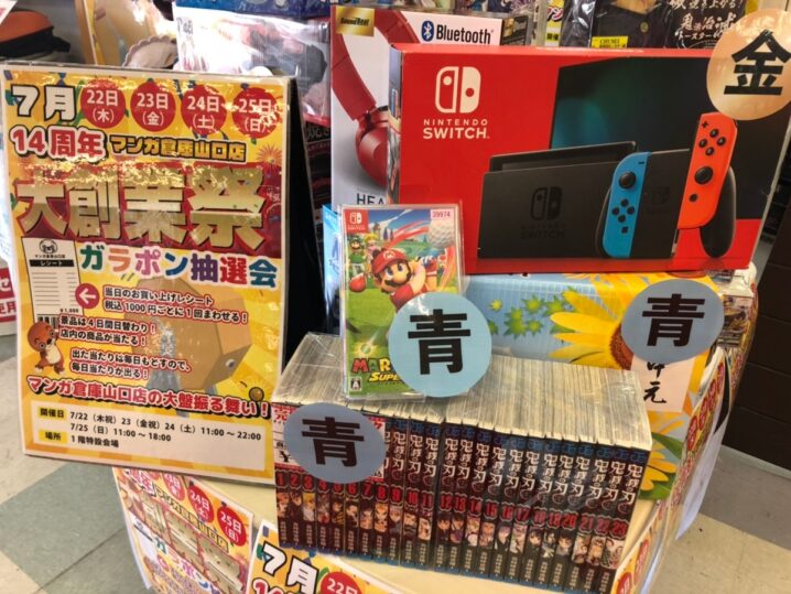 本日もマンガ倉庫山口店で 大創業祭ガラポン抽選会を開催いたします! 本日のお買い上げレシート税込1,000円ごとに1回回せます! 本日23日金曜日の当たりはこちらです!✨ ●金 ニンテンドースイッチ新モデル…
