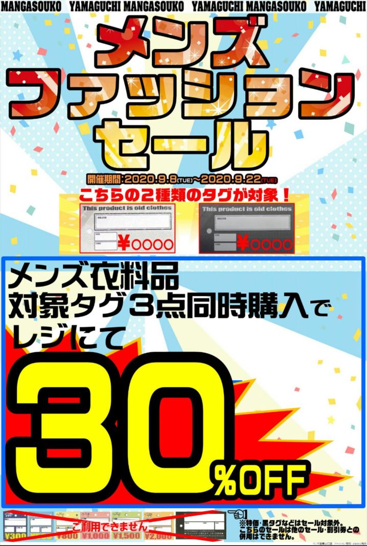只今ファッションフロアではとってもお得なセールを開催中! 対象のメンズ衣料3点同時購入でレジにてなんとなんと30%オフになります! 9月22日までのセールです! この機会に欲しかったあの服を是非ゲットしてください…