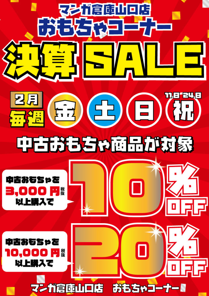 +★2月の毎週金土日と祝日はおもちゃコーナーにて決算セール開催中★+