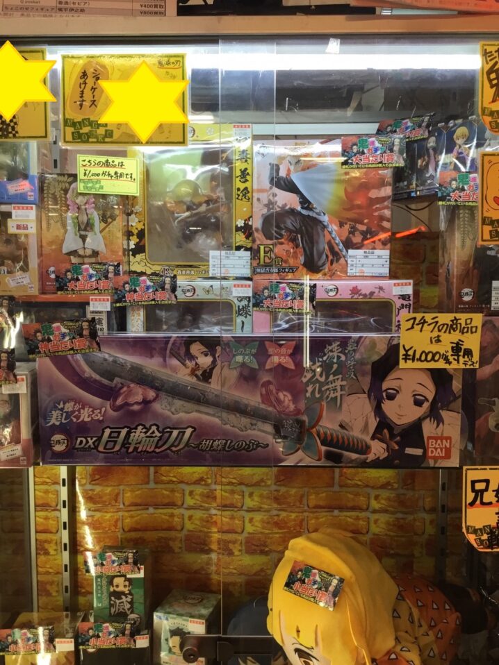 おもちゃコーナーよりお知らせです☆ 1000円ガチャ、鬼滅の刃コーナー 神当たりに『鬼滅の刃DX日輪刀〜胡蝶しのぶ〜』入ってます! 早い者勝ちです☆ その他各種ガチャ稼動中です!