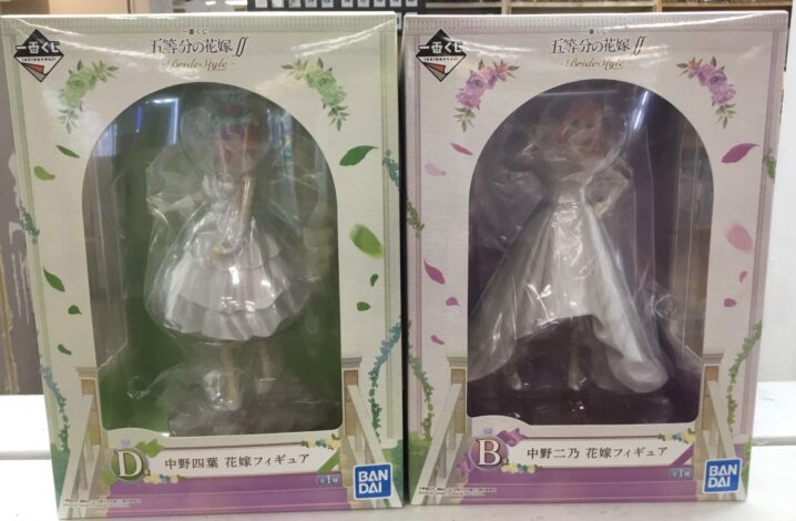 おもちゃコーナーより 本日発売の一番くじ 五等分の花嫁 ❤️B賞中野二乃花嫁フィギュア ❤️D賞中野四葉花嫁フィギュア 買取らせていただきました✨ 当…