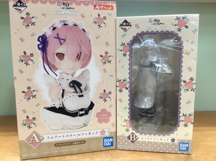 おもちゃコーナーより買取情報のご案内です♪ 一番くじ Re:ゼロから始める異世界生活 ー喜びなさい、両手に花ってヤツよー A賞 ラムアートスケールフィギュア B賞 エミリア フィギュア こちら買取らせていただきました(&…