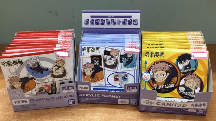 おもちゃコーナーより新商品入荷情報のご案内です♪ 呪術廻戦 ゆるっとクッションシリーズより ☆スタンドミニアクリルキーホルダー ☆アクリルマグネット ☆CANバッジ こちら入荷致しました‼️ …