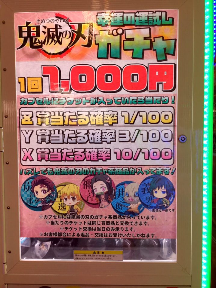 鬼滅の刃千円ガチャ好評稼動中です! 当店へお越しの際は是非回してみてください(∩´∀`)∩
