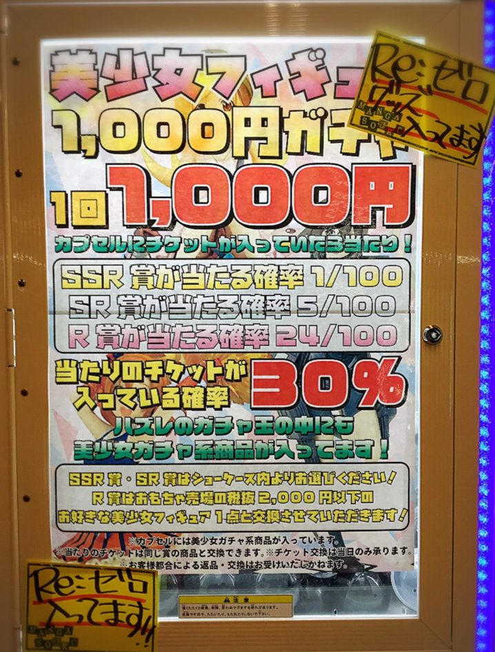 ★おもちゃコーナーよりお知らせ★ 美少女ガチャ好評稼動中です! 大人気のリゼロになっていますので、 ぜひマンガ倉庫山口店へお越しくださいませ!