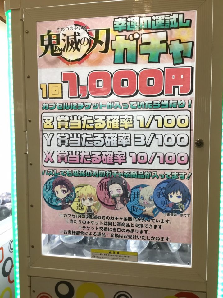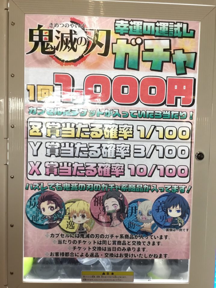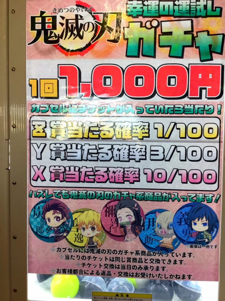 おもちゃコーナーより 鬼滅の刃千円ガチャ好評稼働中です! ぜひチャレンジしてみて下さい(^▽^)/