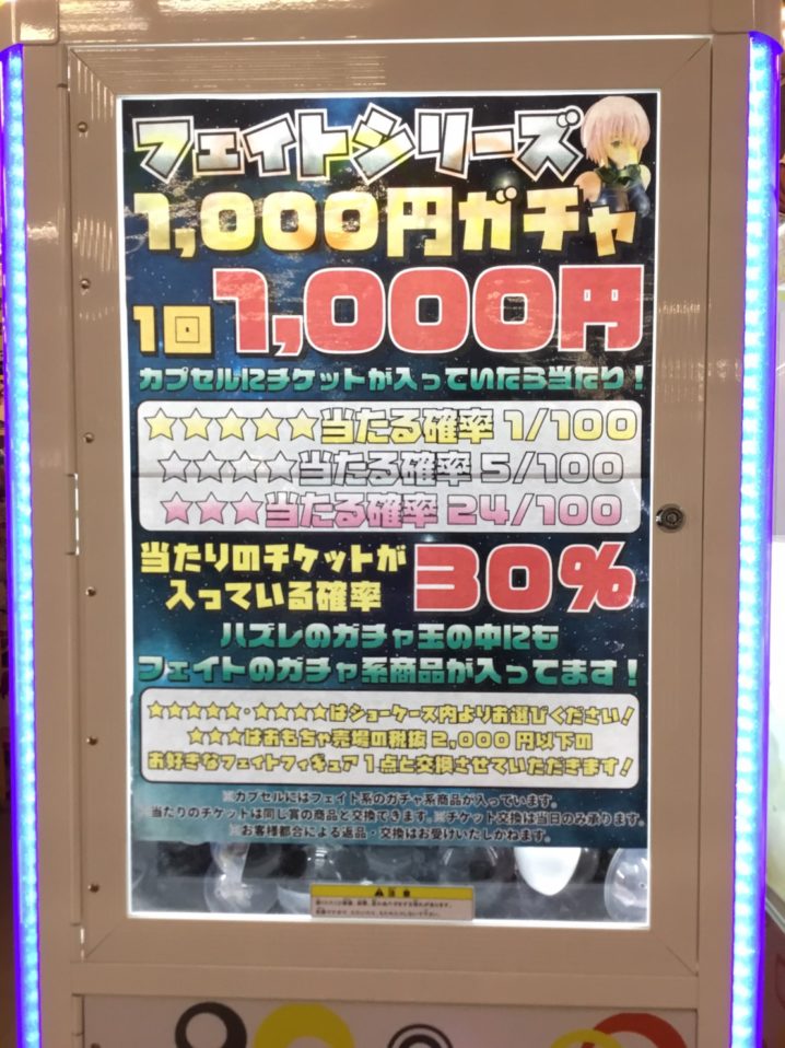 おもちゃコーナーより フェイト千円ガチャ好評稼働中です! ぜひチャレンジしてみて下さい(^▽^)/