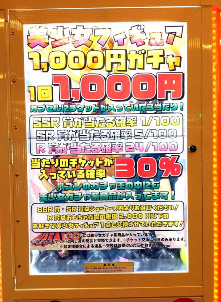 おもちゃコーナーより 美少女フィギュア千円ガチャ好評稼働中! 当店へお越しの際は是非、回してみてみてください(*´ω`*)