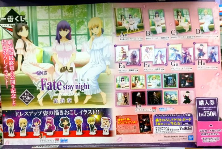 マンガ倉庫山口店からお知らせです! 一番くじ Fate/stay night 税込750円で販売中です! ラストワン賞は、キービジュアルアクリルボードになります✨ ぜひチャレンジして下さい(∩´∀`)∩