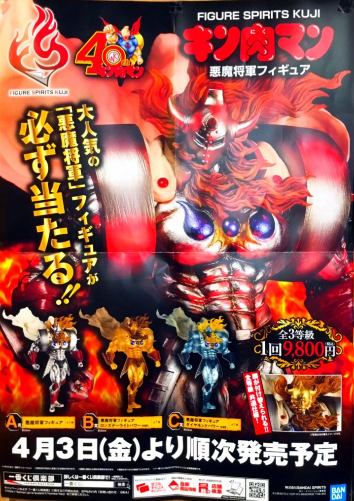 ★おもちゃコーナーよりお知らせ★ 明日4月3日(金)午前9時から、 1番くじ キン肉マン 悪魔将軍フィギュア 全3等級 一回9800円(税込) を販売致します! A賞悪魔将軍 B賞悪魔将軍ロンズデーライトパワー C賞悪魔…