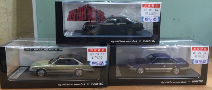 おもちゃコーナーよりおすすめ商品のご紹介です! 『ignition model+tomytec 西部警察 マシンx t-gi4303』 『ignition model+tomytec あぶない刑事 日産レパード xs-I…