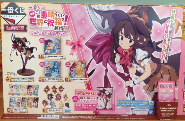 おもちゃコーナーより一番くじのご案内です! 我が真なる姿に驚きが隠せないようですね!! くじを引くなら今のうちですよ! 一番くじ 映画この世界に祝福を!紅伝説スイートハッピーライフ A賞 ミルクチョコレート…